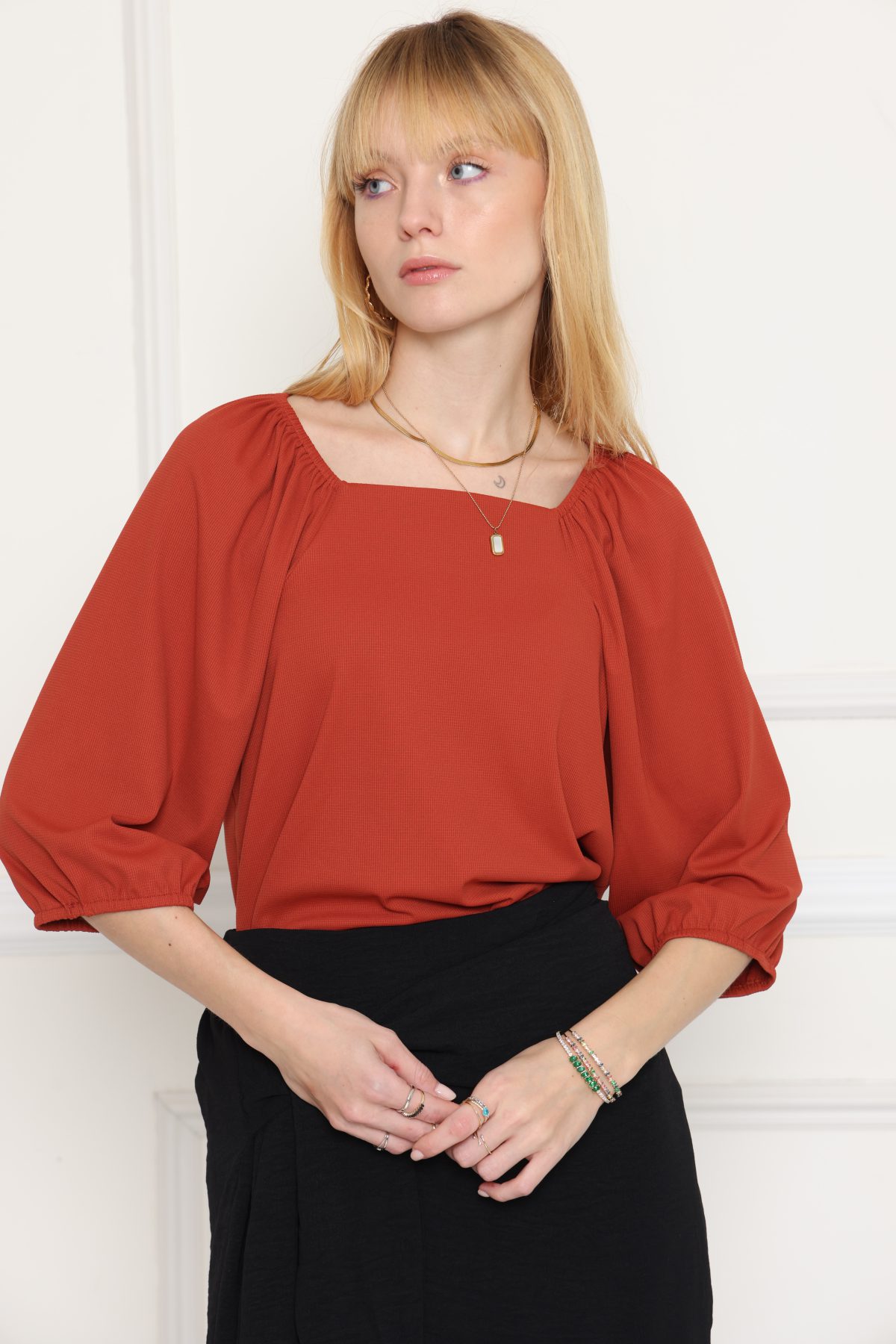 חולצת בייסיק לנשים בעיצוב ייחודי עם כיווצים עדינים בחלק העליון ושרוולים ארוכים ורחבים. החולצה משתלבת נהדר עם כל סגנון, ומוסיפה נגיעת שיק לכל הופעה, בין אם ליום-יום ובין אם לאירועים מיוחדים.