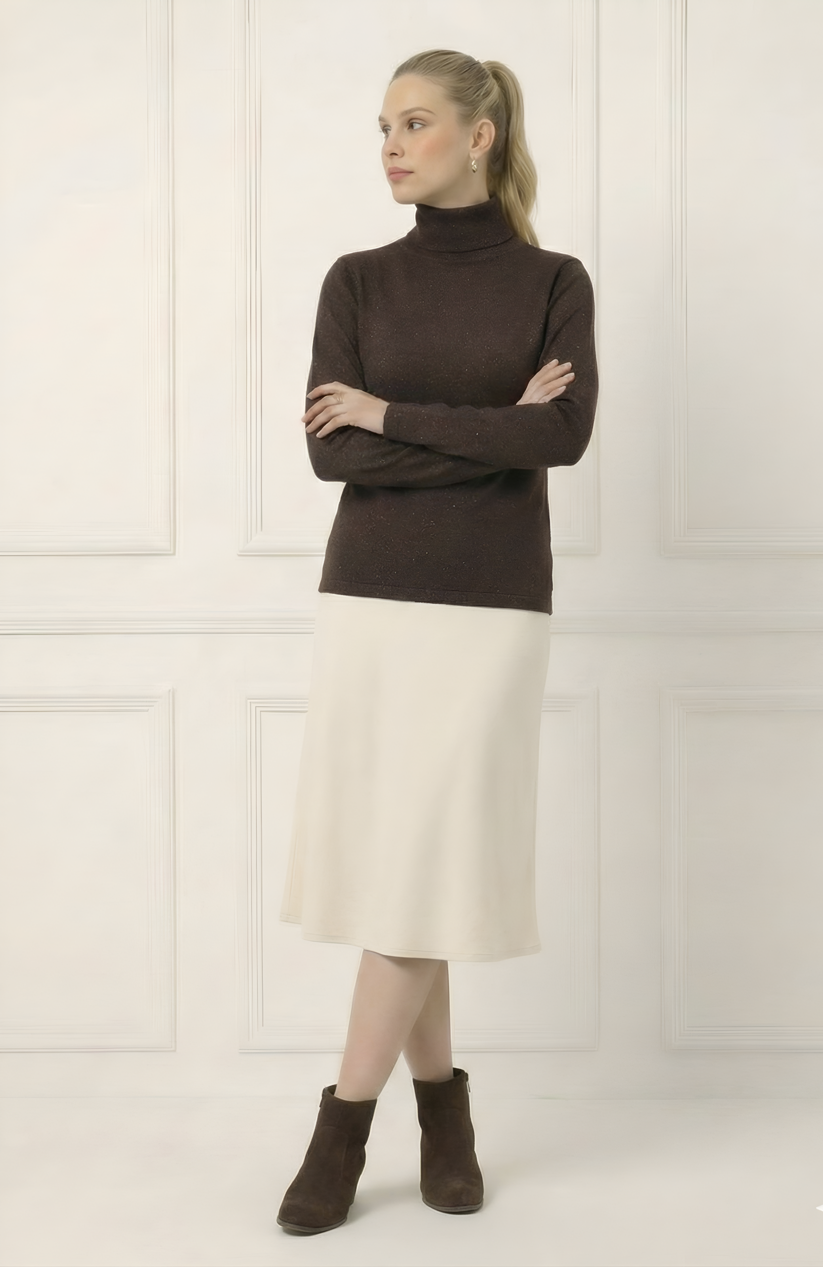 חולצת צווארון עגול מבד סריג דק ונעים, המעניקה מגע רך על הגוף ומראה נקי ומינימליסטי שמשתלב בקלות בכל לוק.