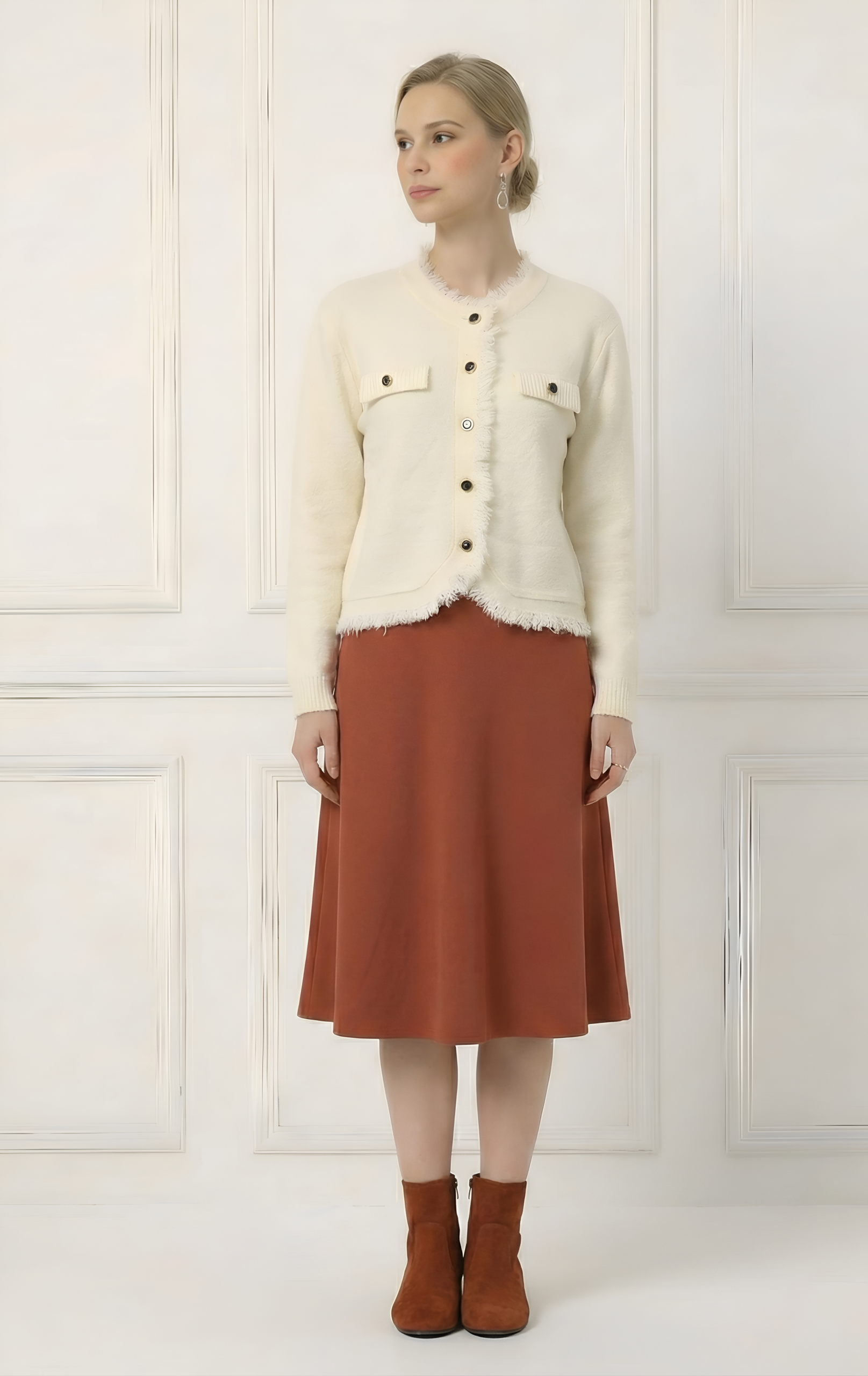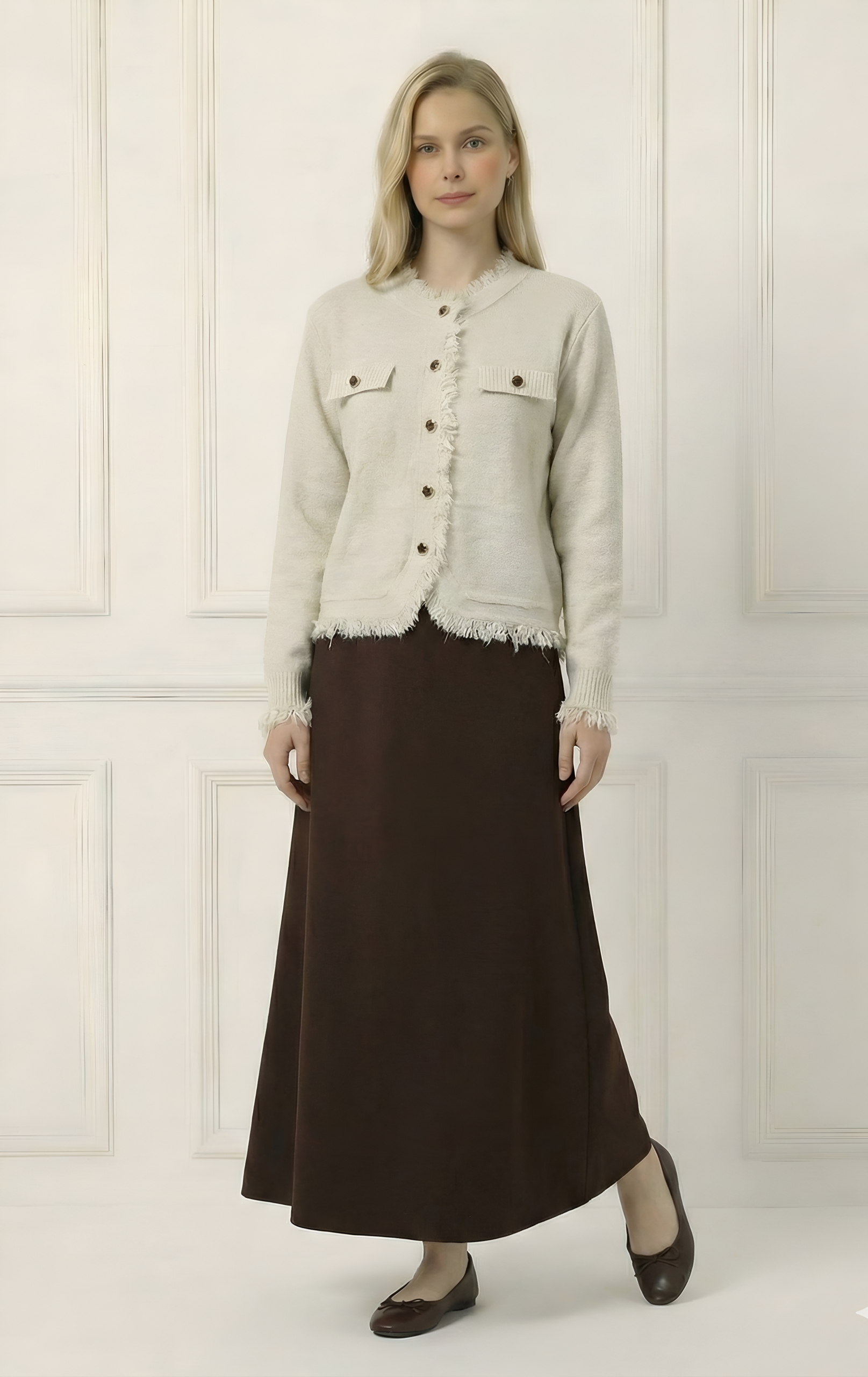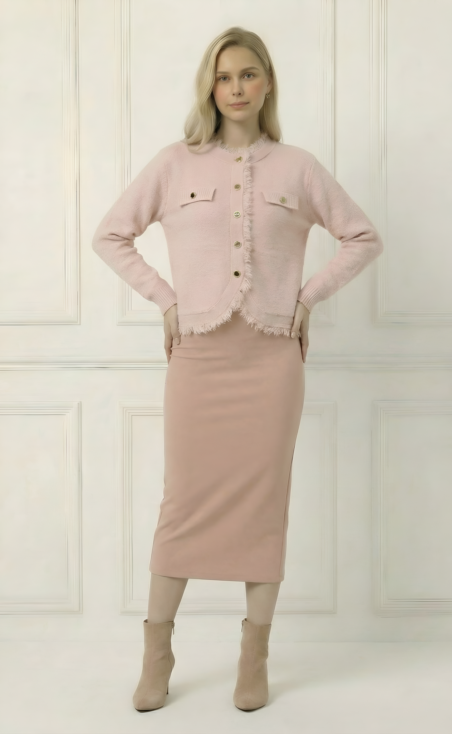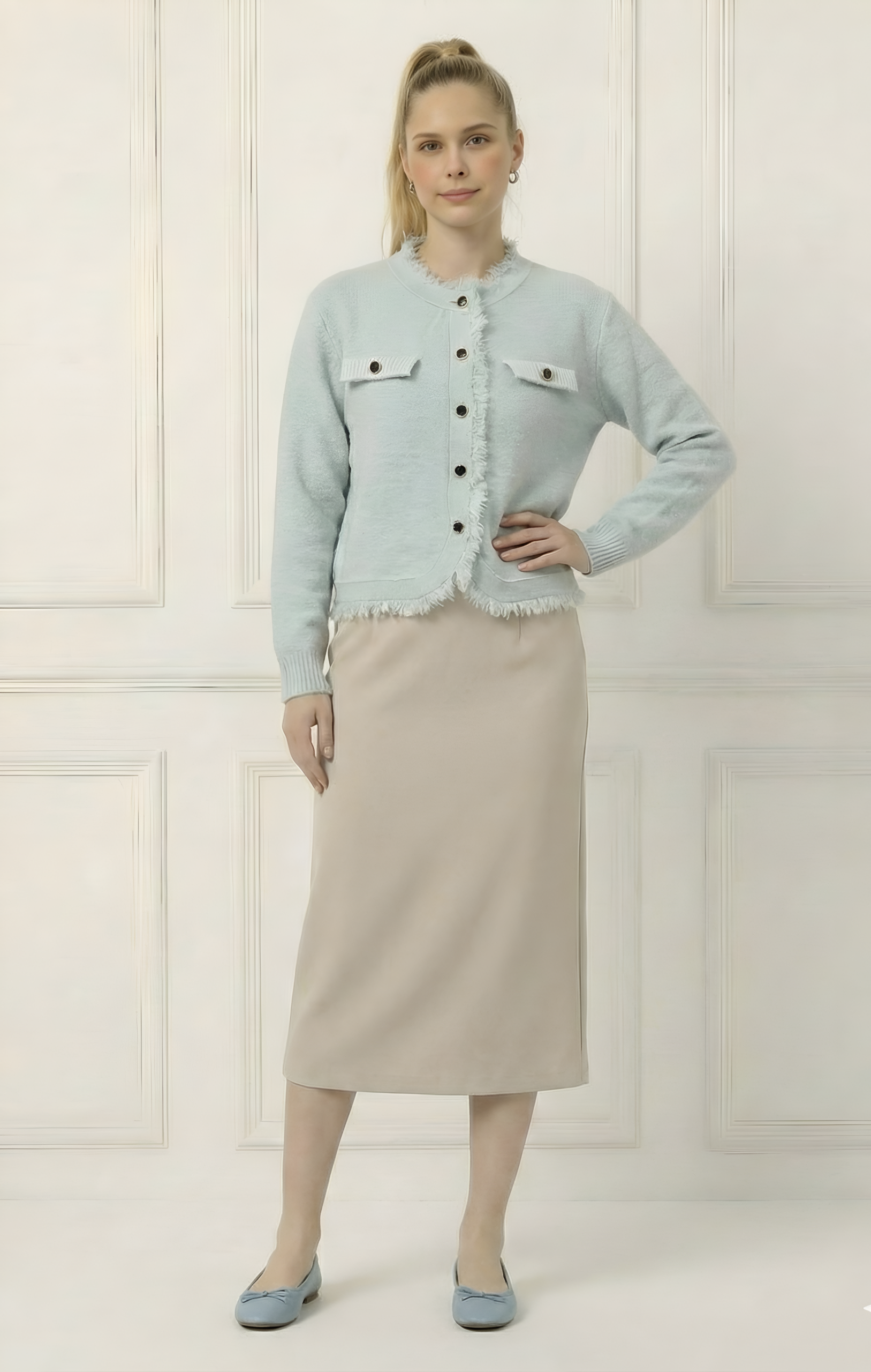 ג’קט קרדיגן מבד סריג קליל ונעים, מתאים לכל עונה ומעניק מראה אלגנטי ונוח בקלות.