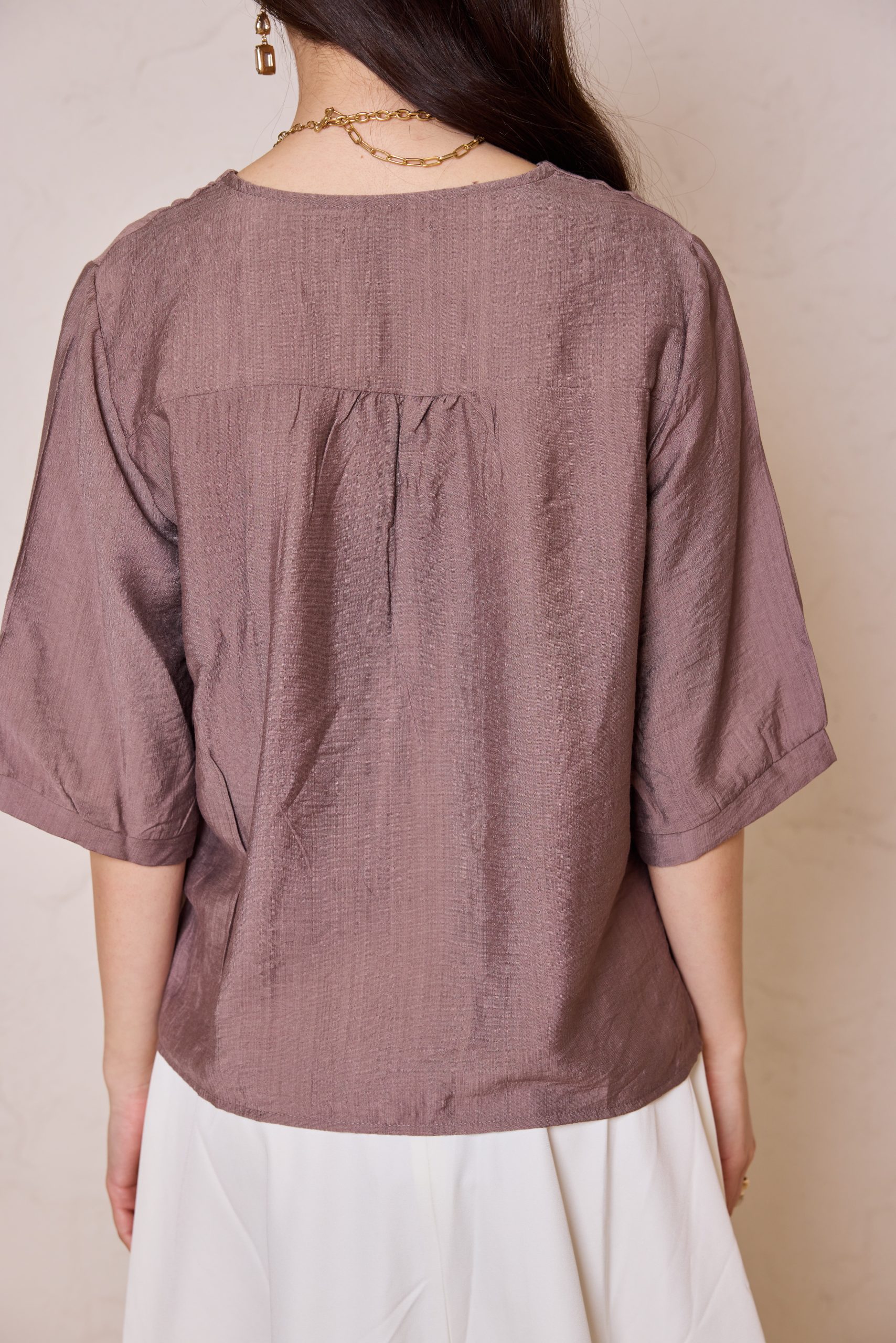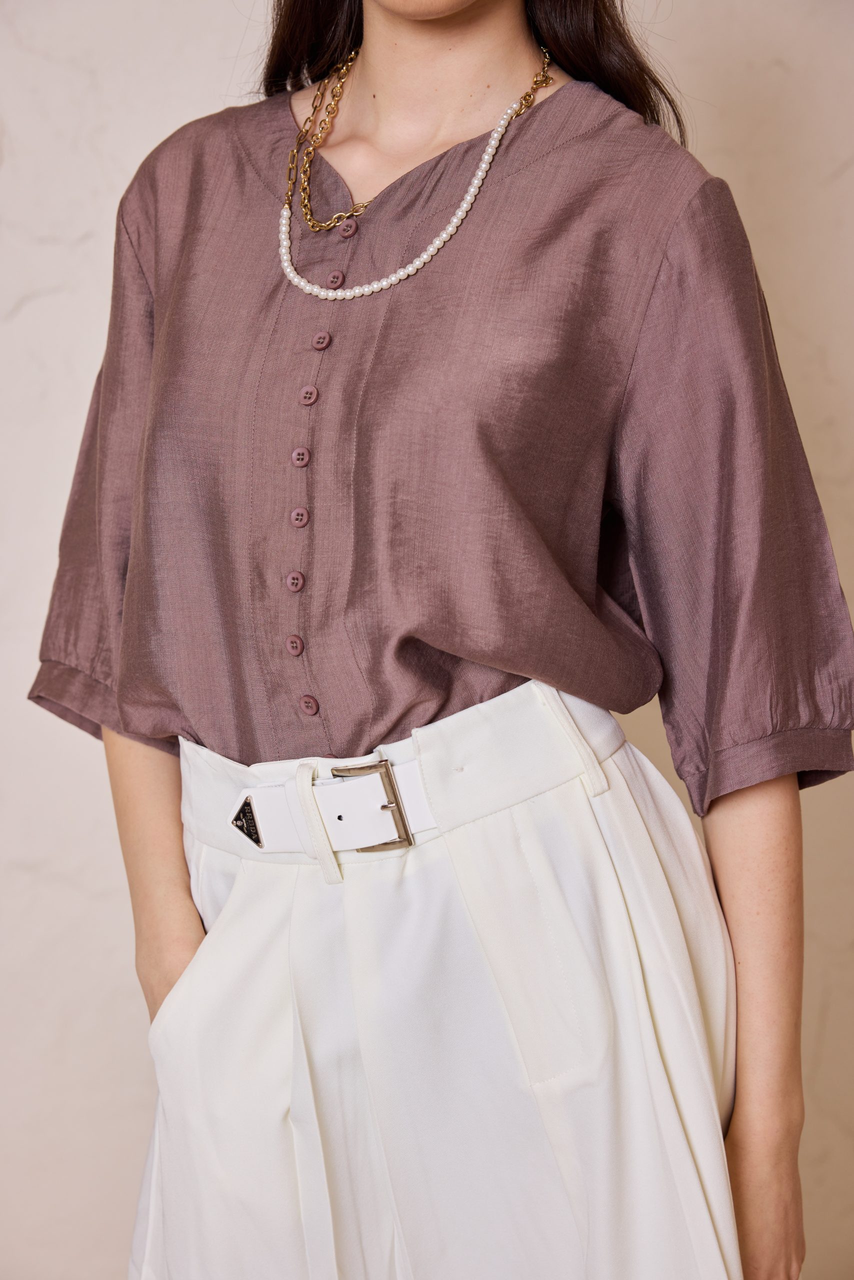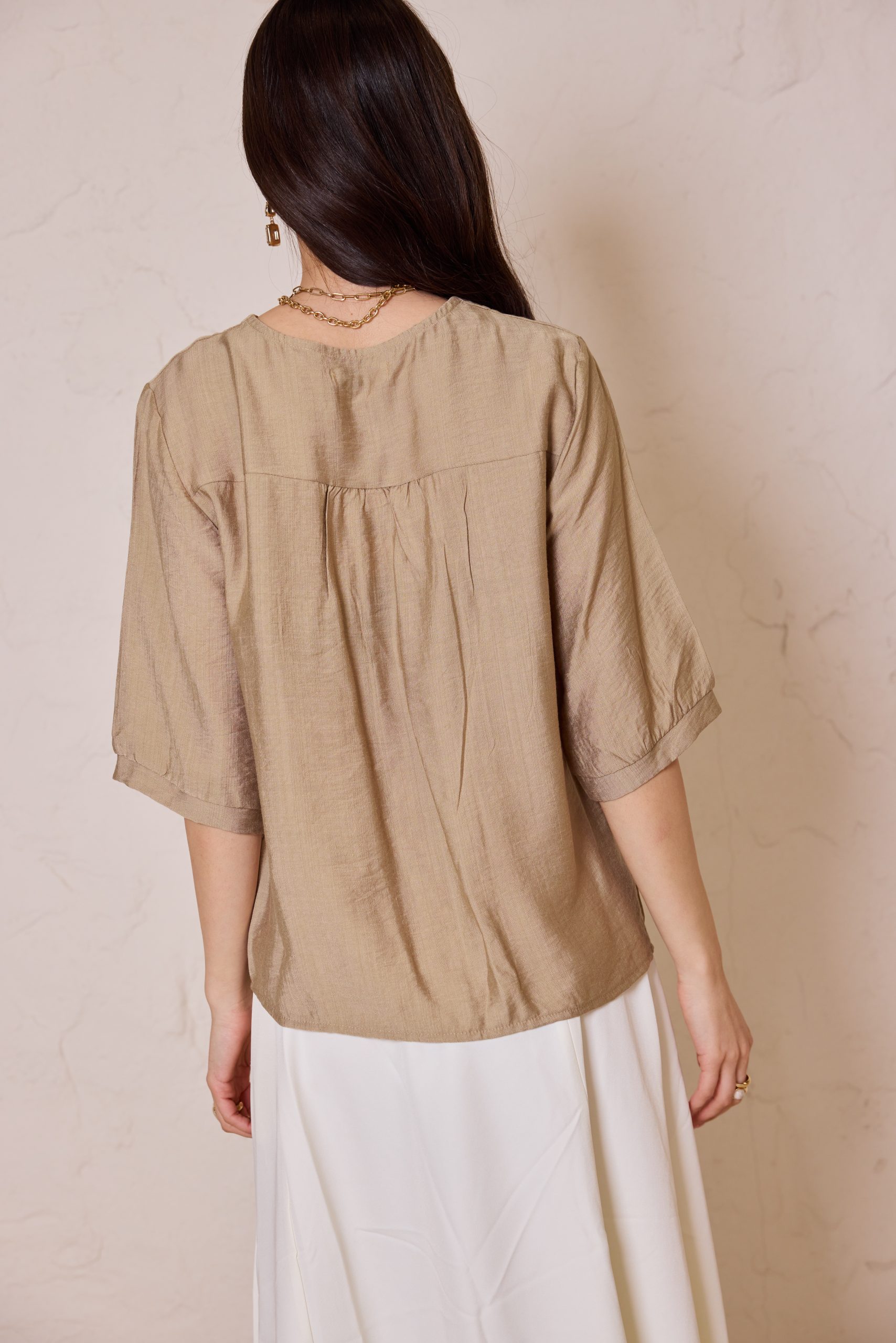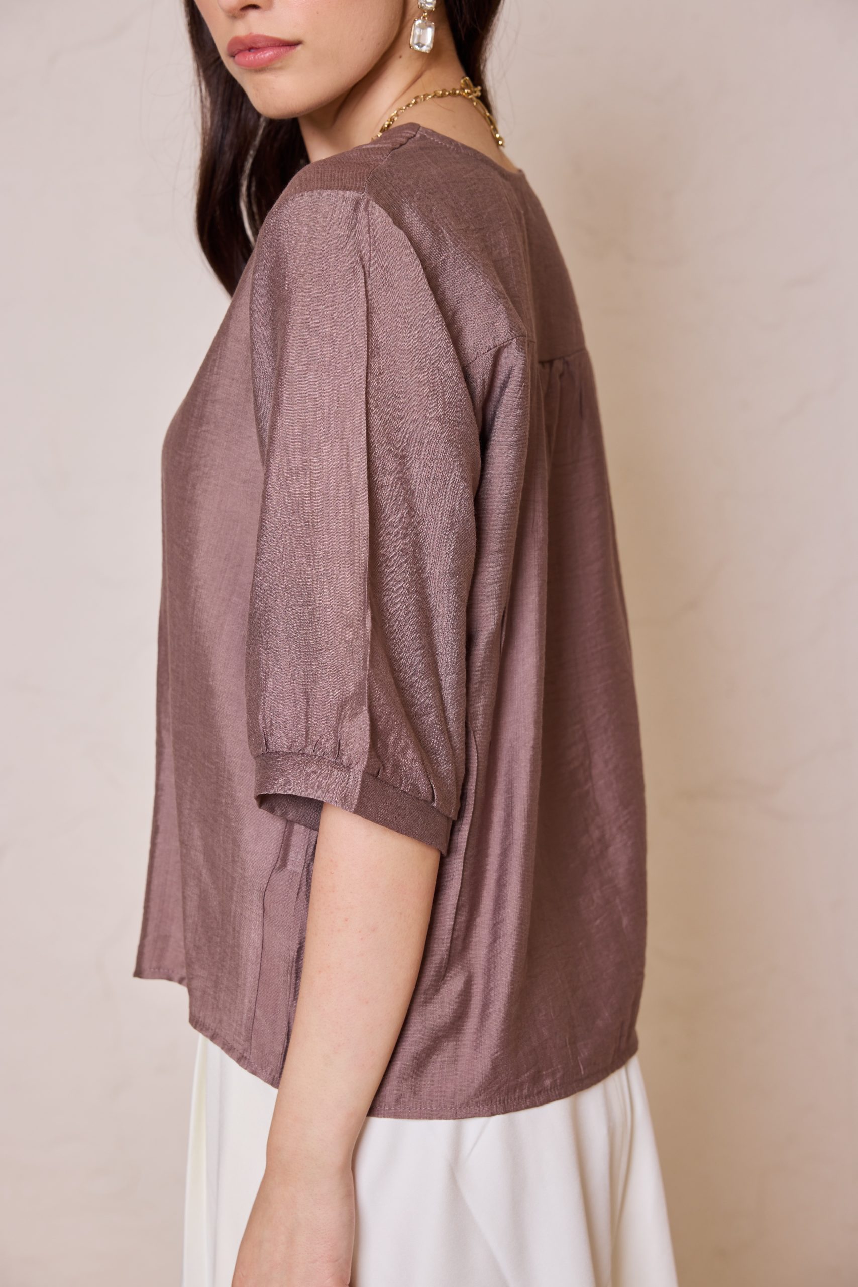 חולצת כפתורים קלאסית מבד פשתן איכותי, אוורירי ונושם, המשלבת מראה יוקרתי ונינוחות מרבית.