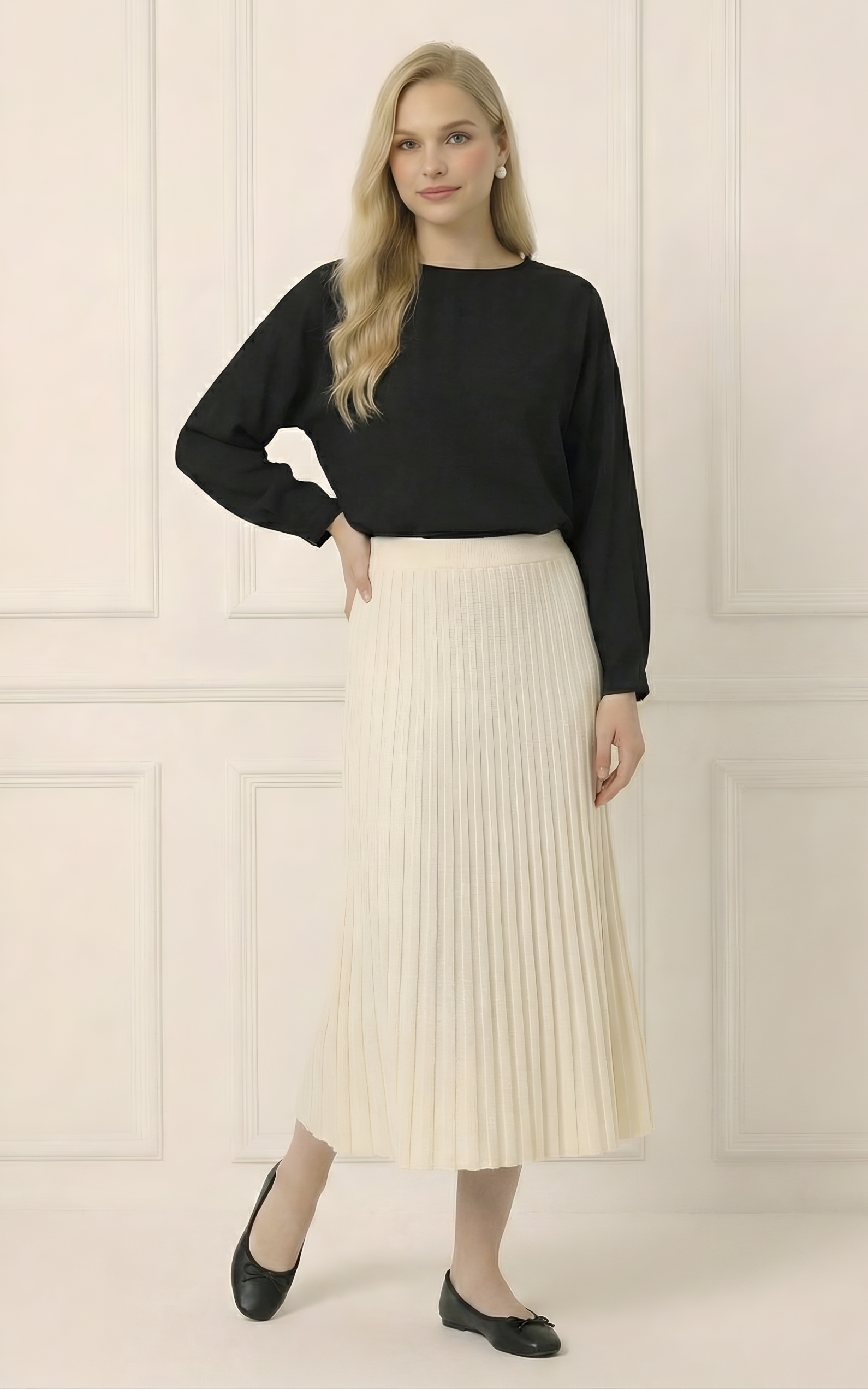 חצאית מבד סריג רך ונעים, בעיצוב מחמיא ונוח, משלבת מראה אלגנטי עם נוחות יומיומית ומתאימה לכל שעות היום.