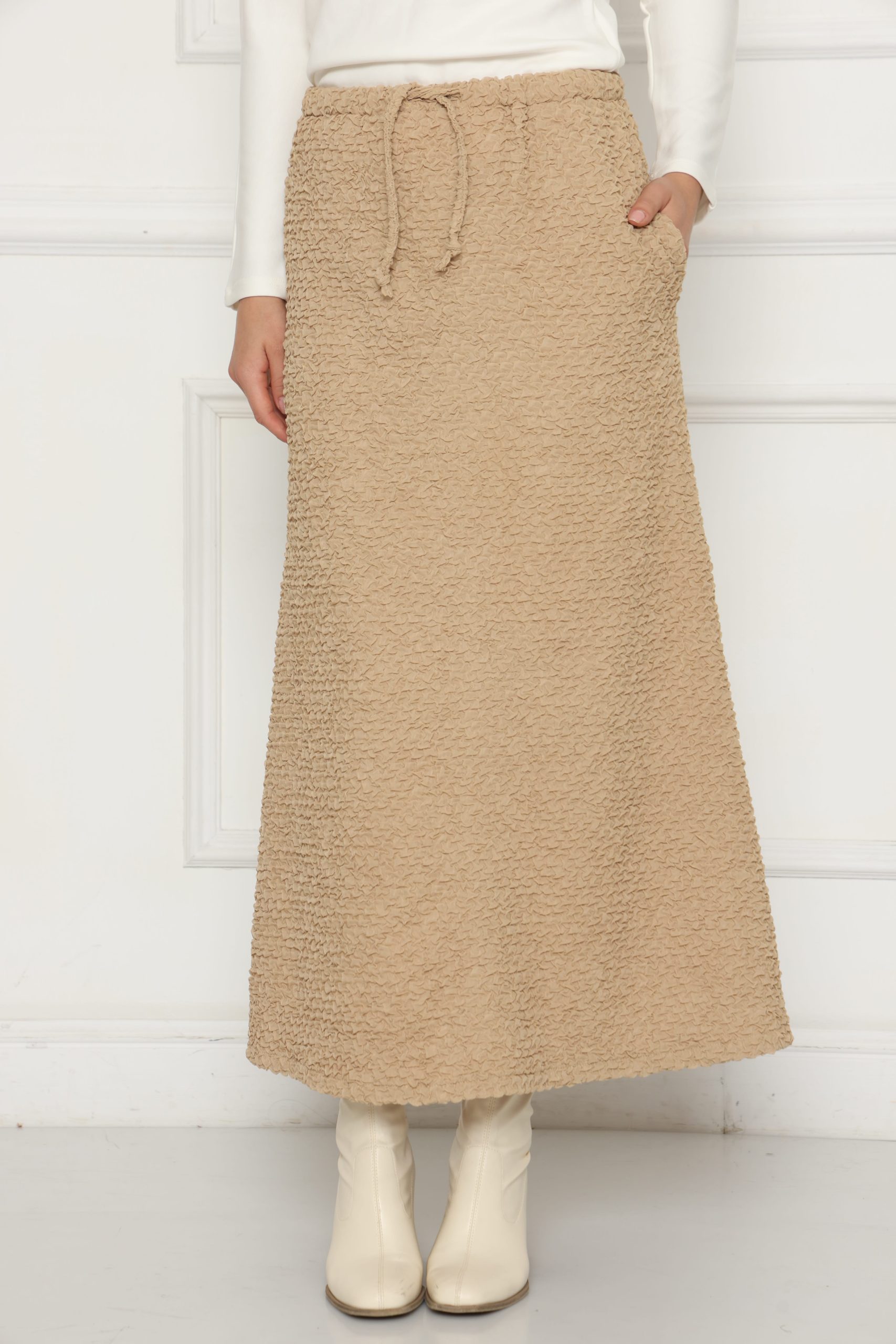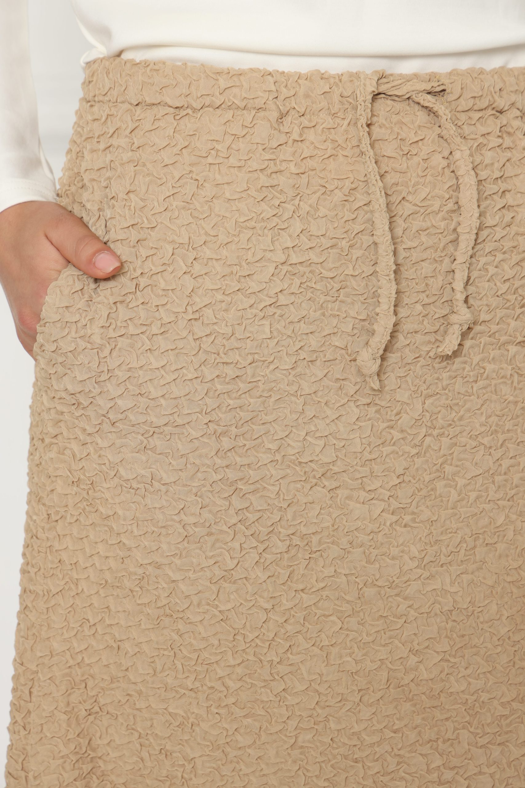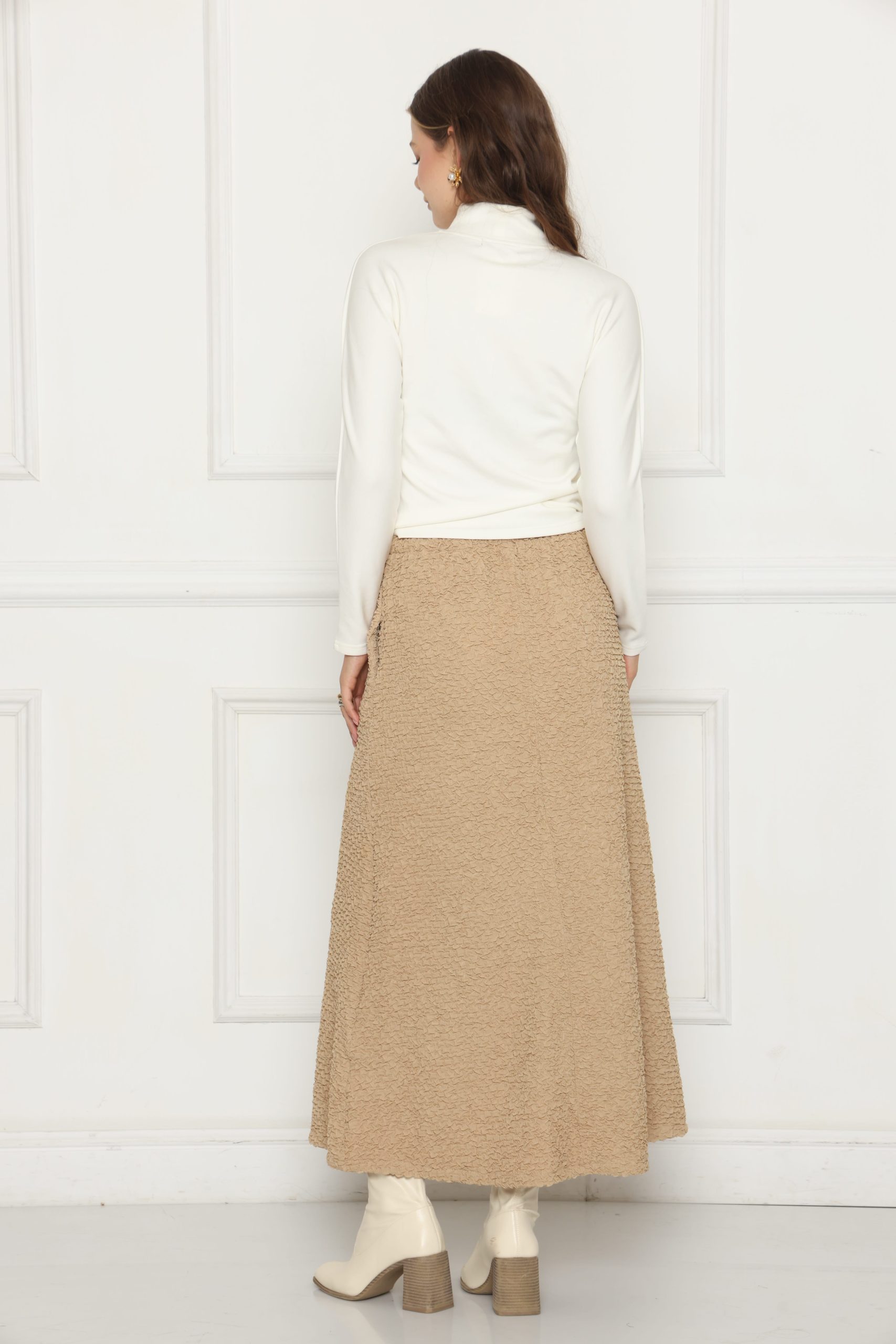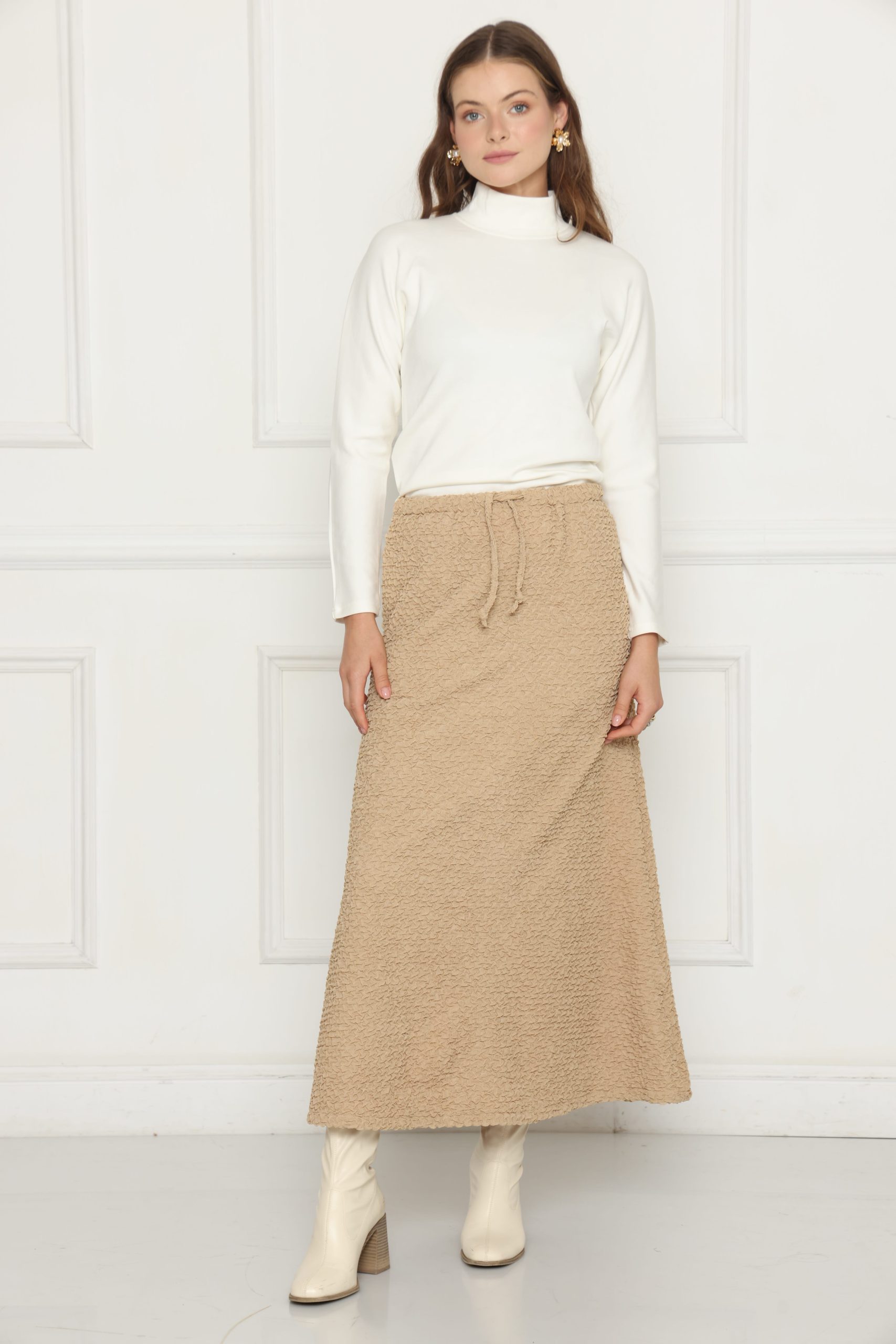 חצאית רשת מבד מקומט קליל ונשפך, בגזרה נשית ומחמיאה, מוסיפה טאץ’ אופנתי וייחודי לכל לוק.