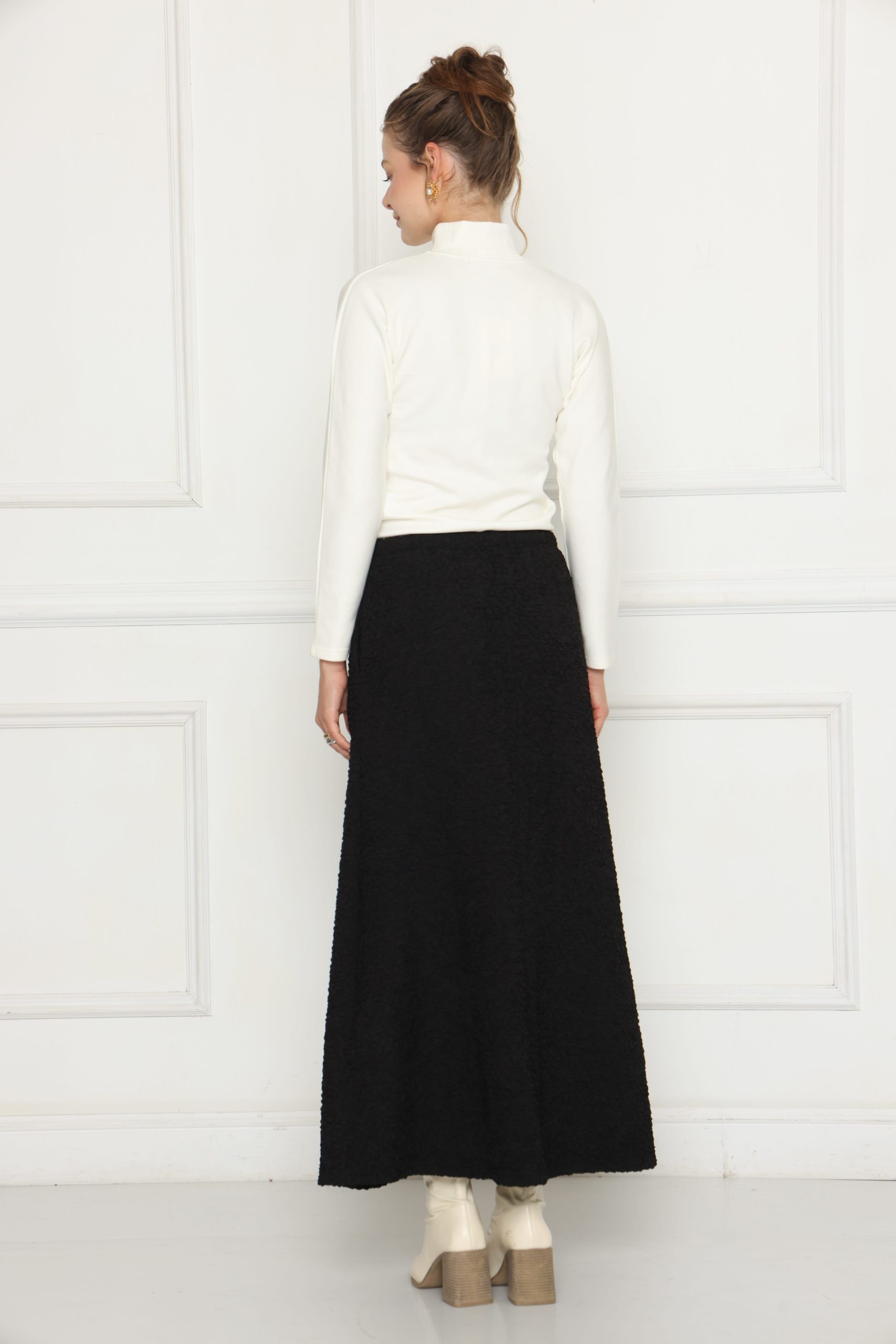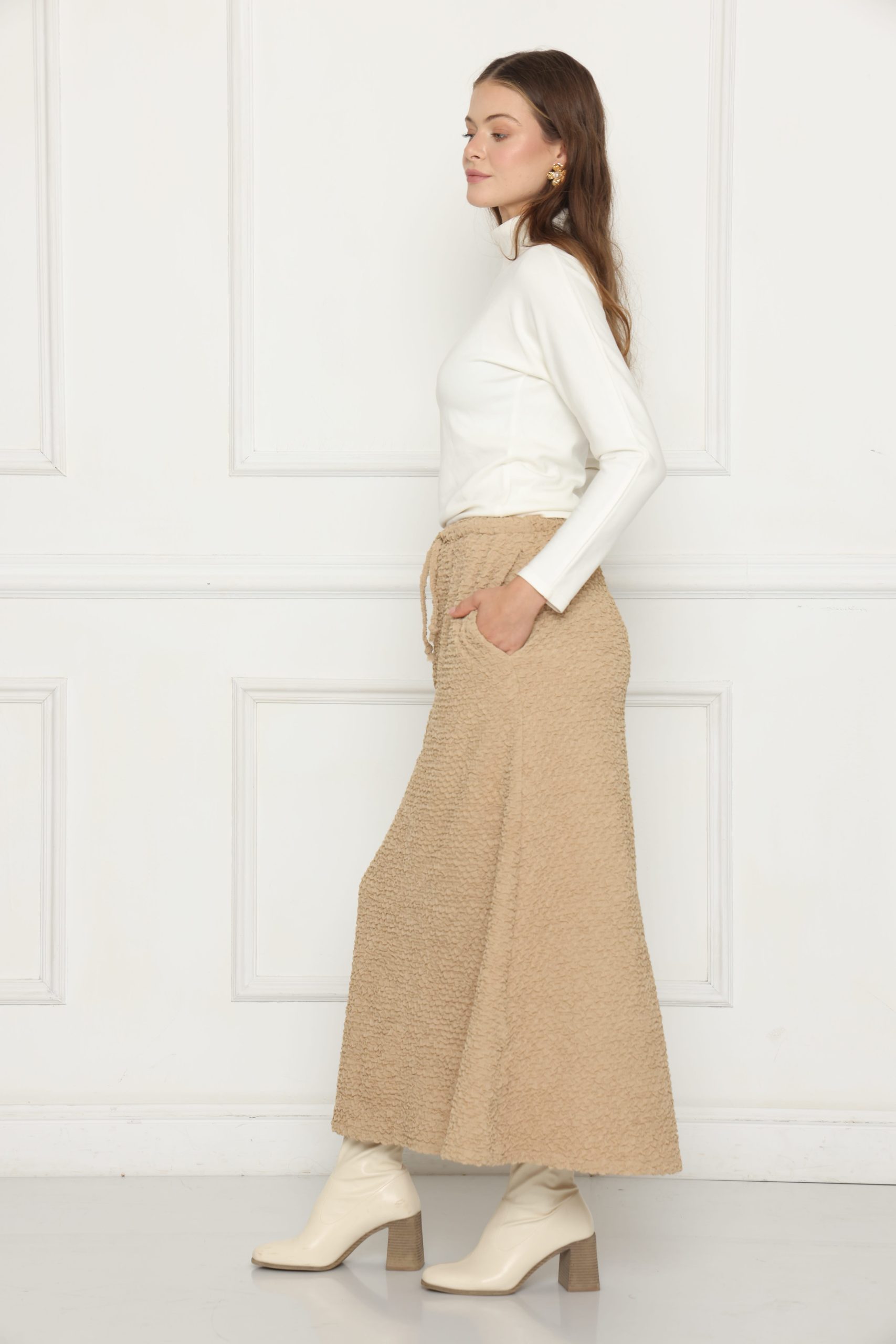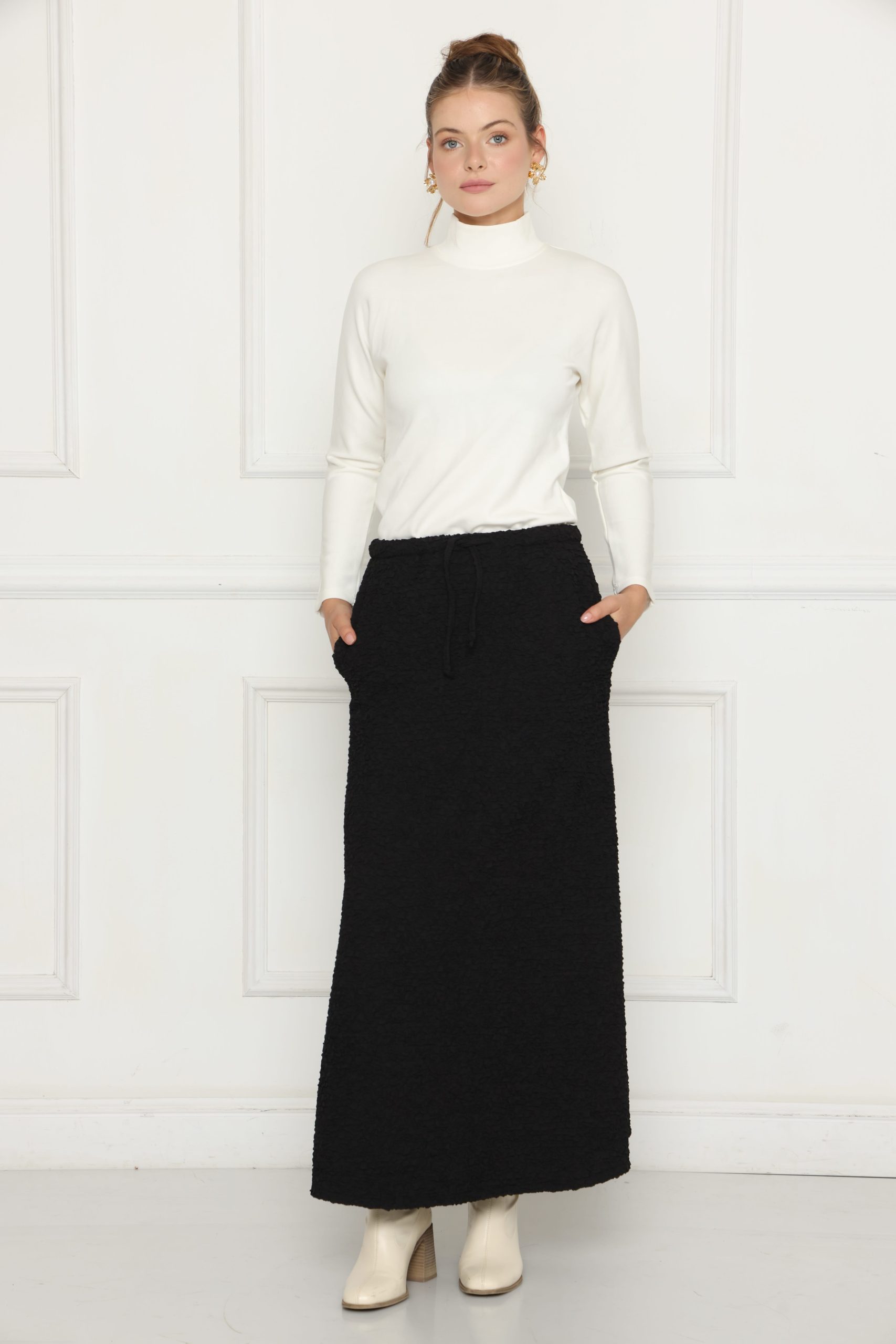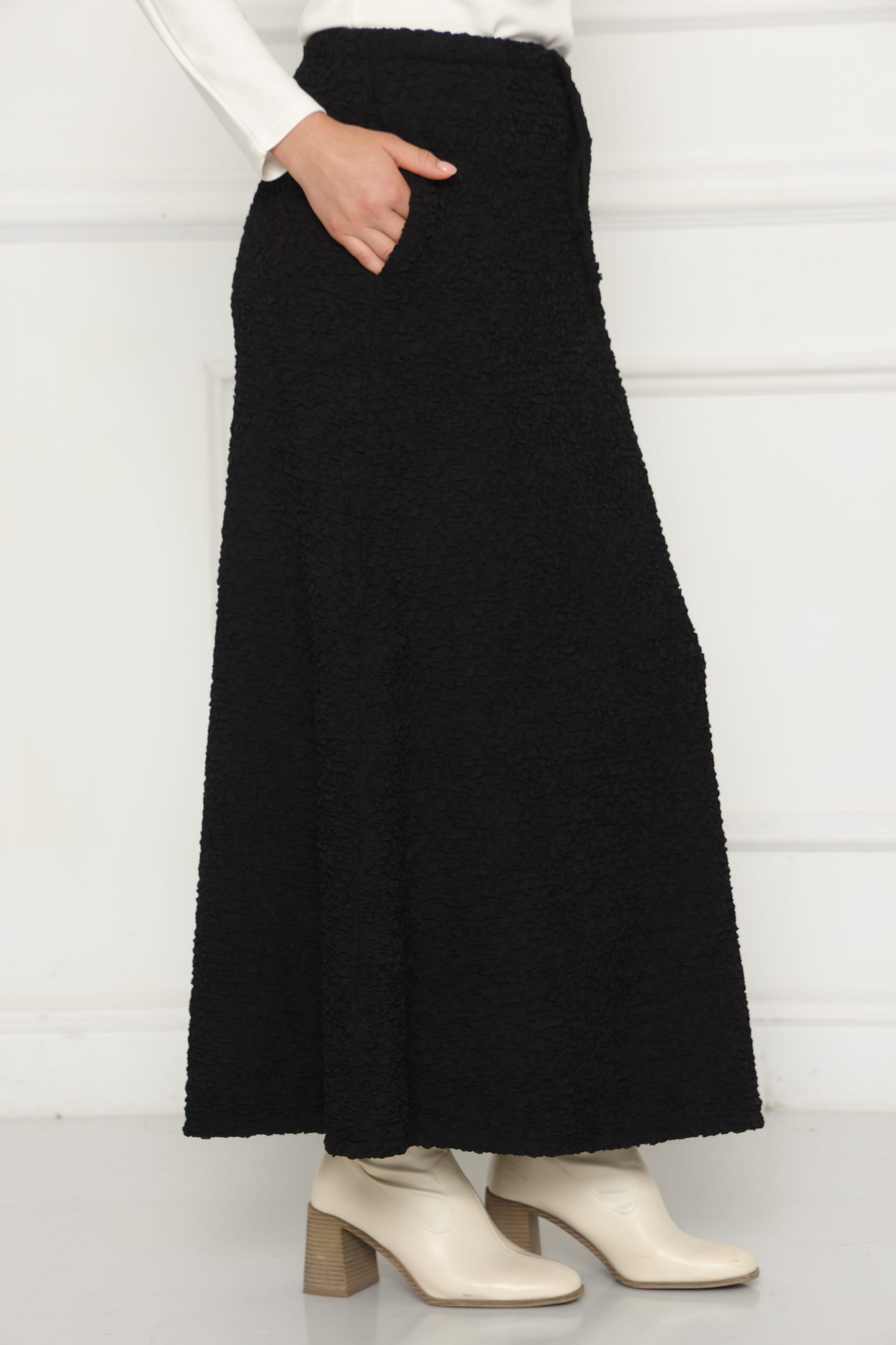 חצאית רשת מבד מקומט קליל ונשפך, בגזרה נשית ומחמיאה, מוסיפה טאץ’ אופנתי וייחודי לכל לוק.