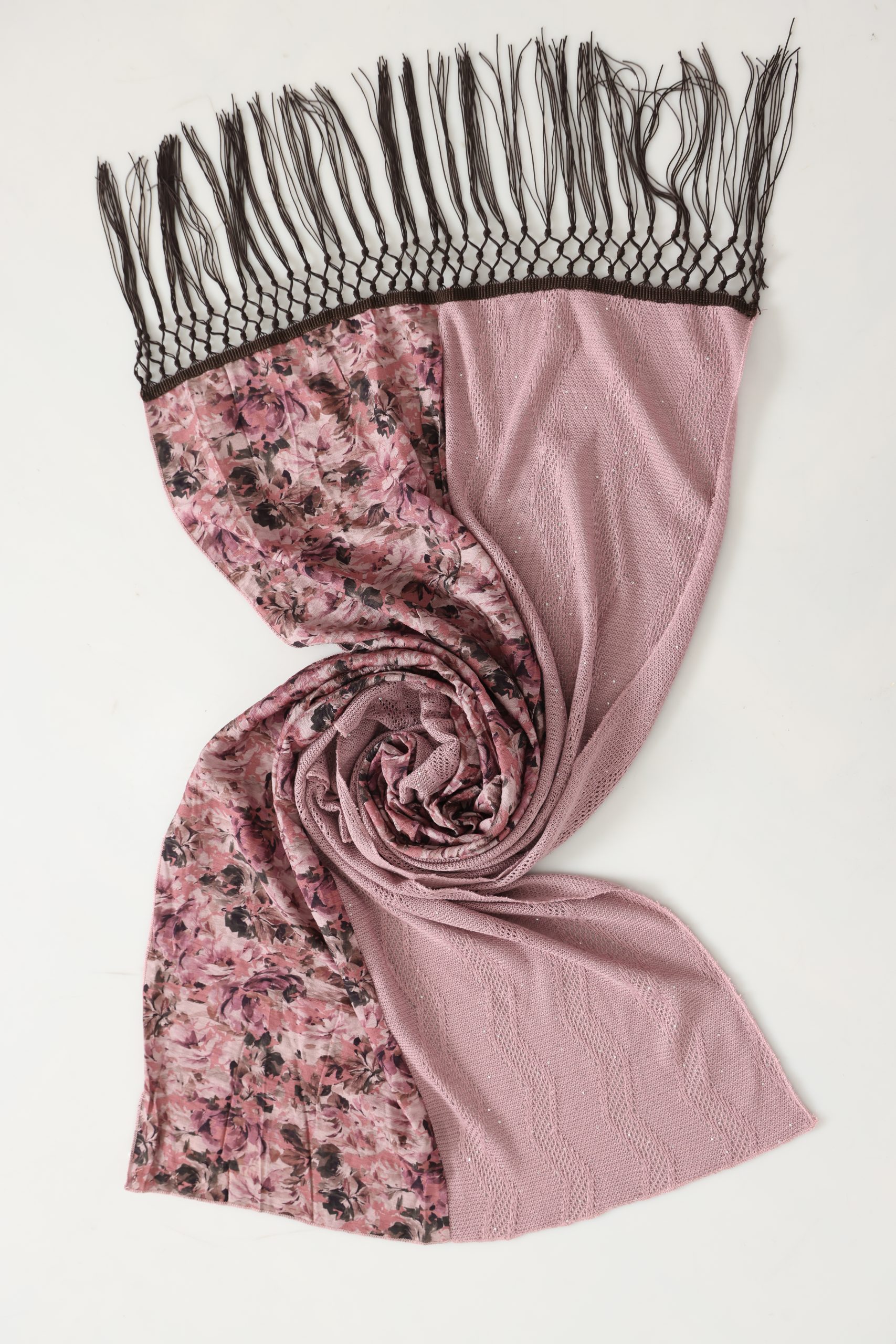 לונג סריג משולב שיפון סגלגל, מושלם כצעיף קליל, כיסוי אופנתי או כתוספת ייחודית ללוק יומיומי וחגיגי.