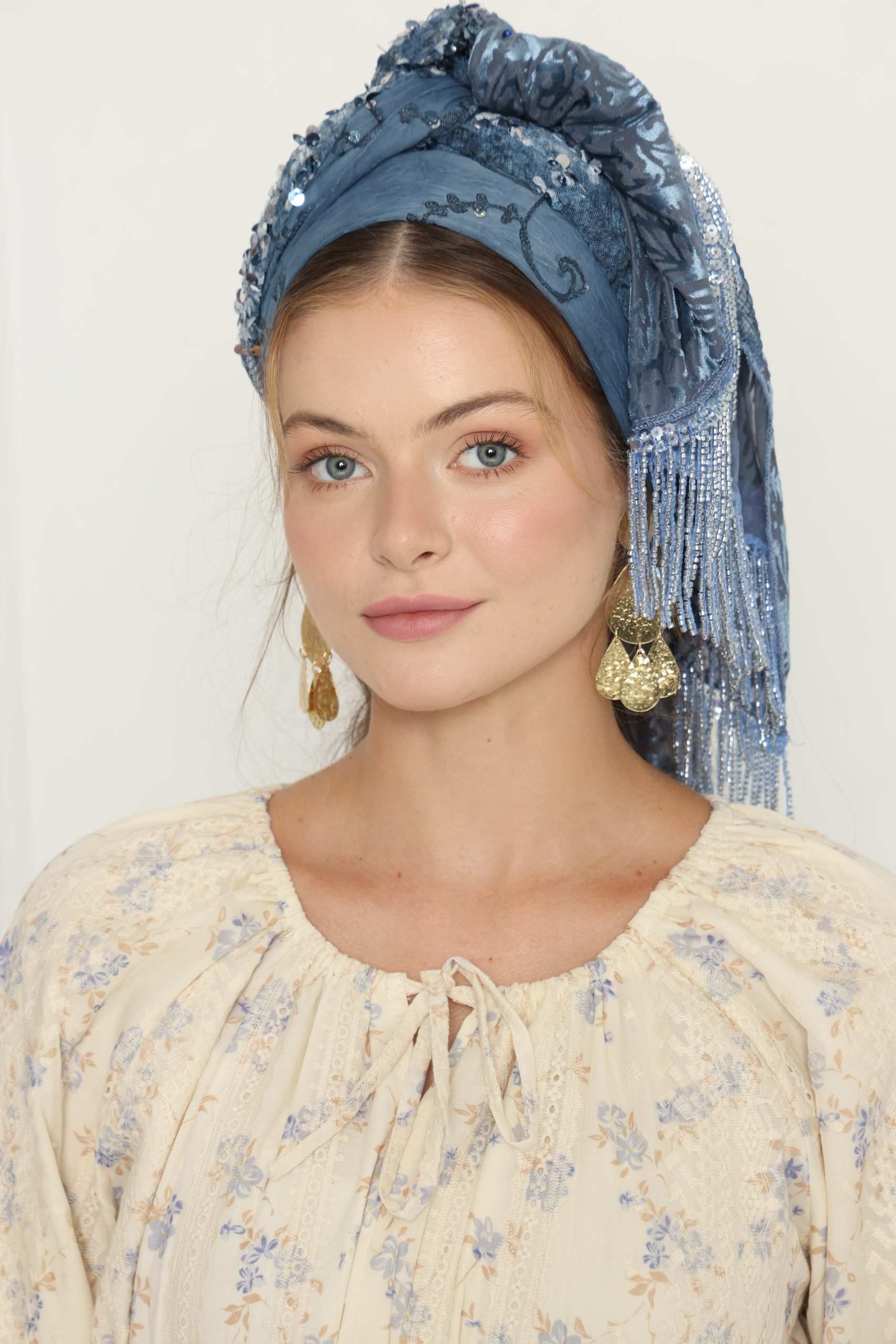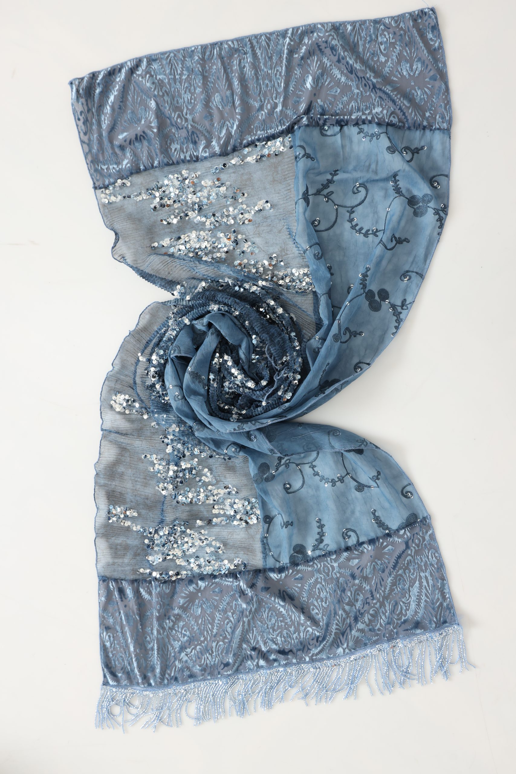 לונג קטיפה צרובה משולב פייט כחול, מושלם כצעיף קליל, כיסוי אופנתי או כתוספת ייחודית ללוק יומיומי וחגיגי.