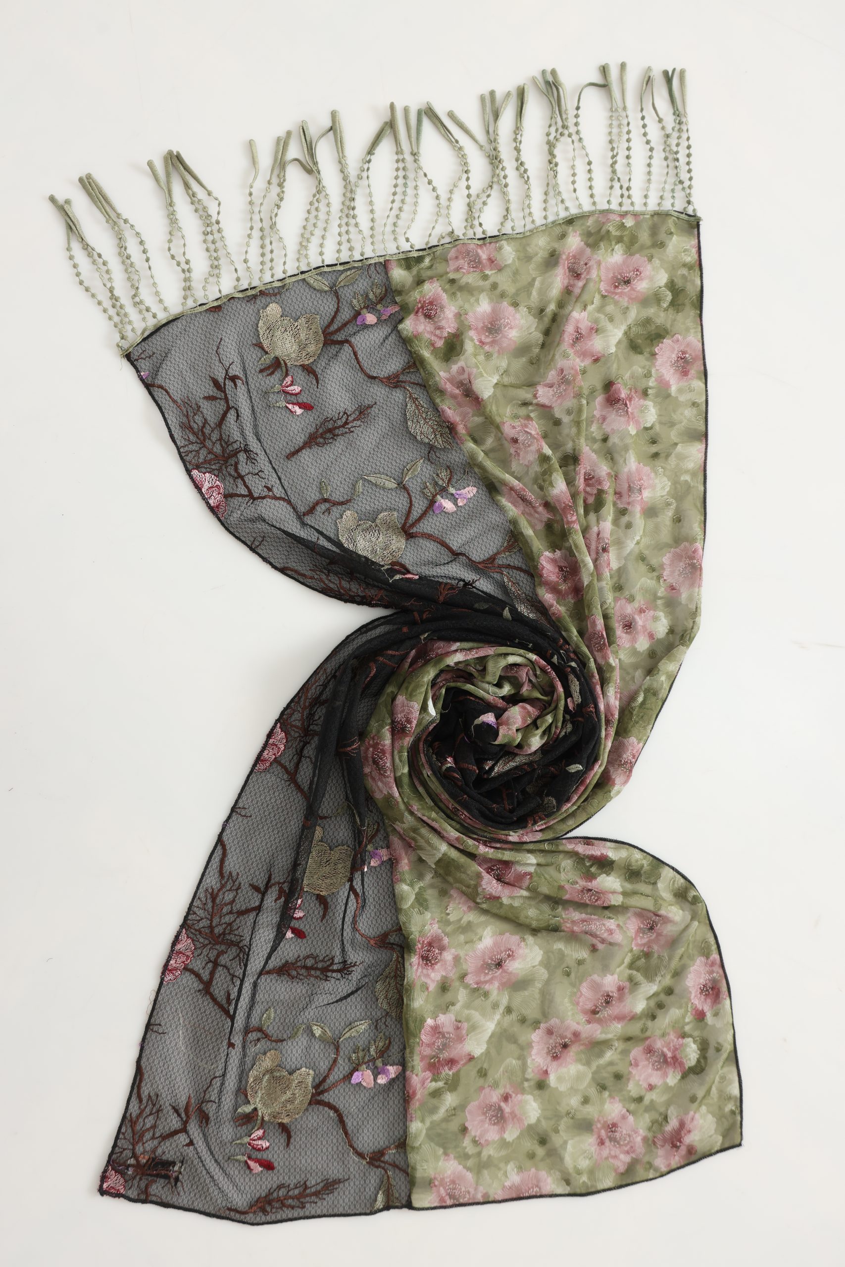 לונג רשת רקומה משולבת חום, מושלם כצעיף קליל, כיסוי אופנתי או כתוספת ייחודית ללוק יומיומי וחגיגי.