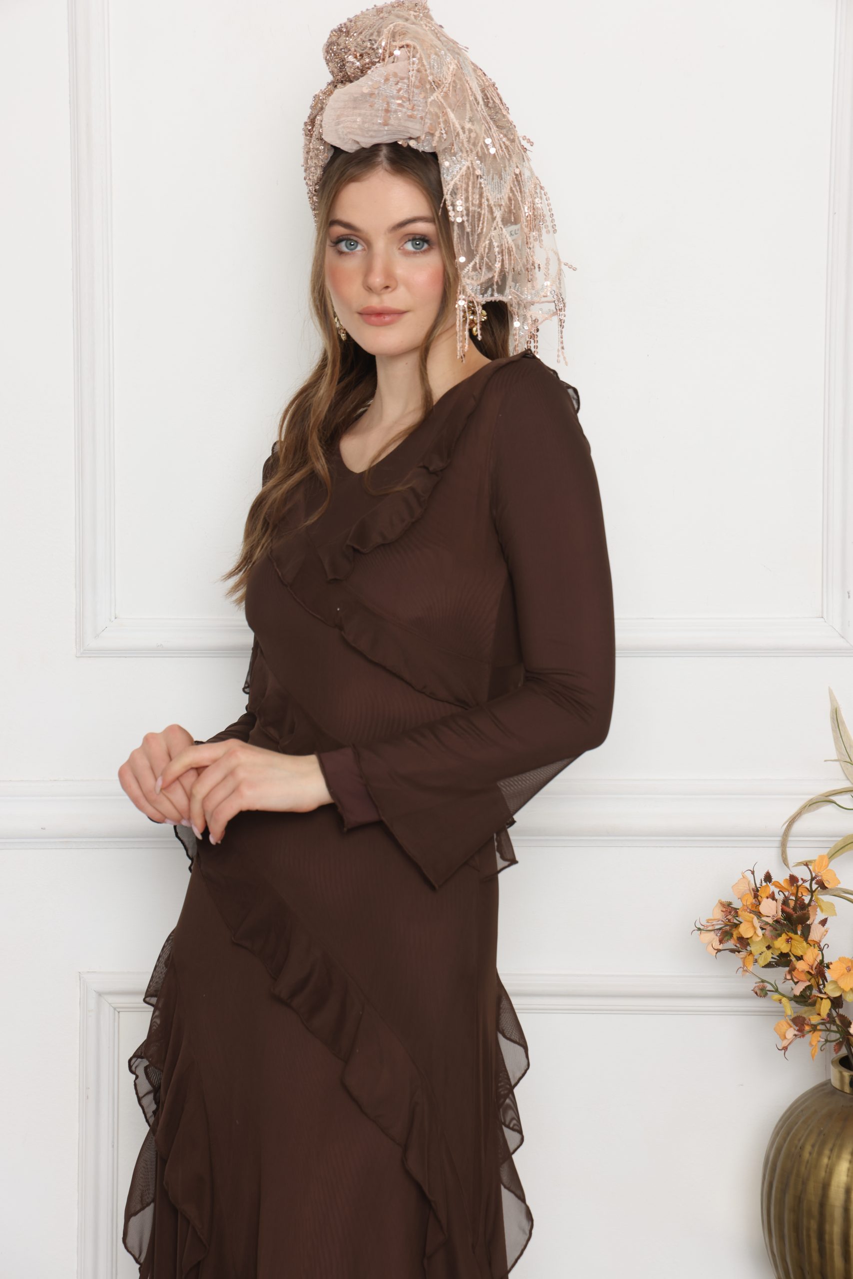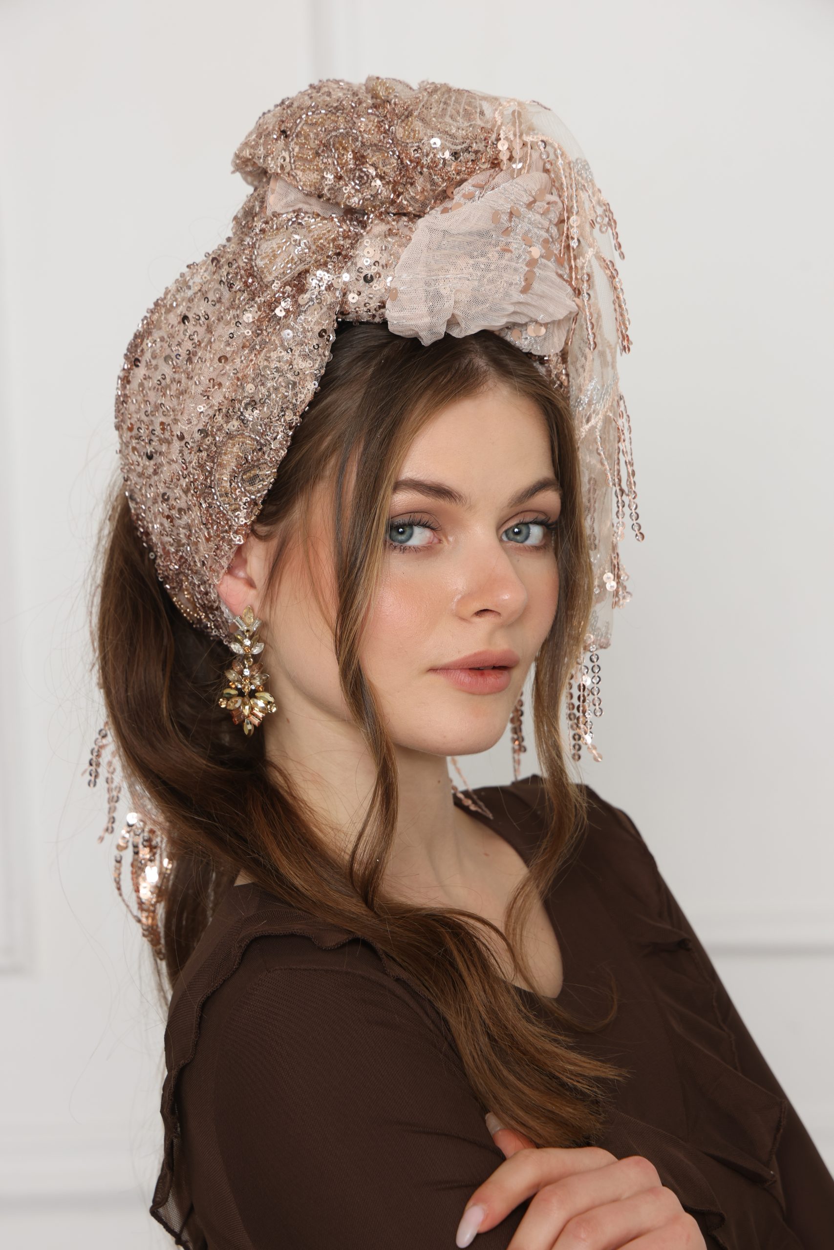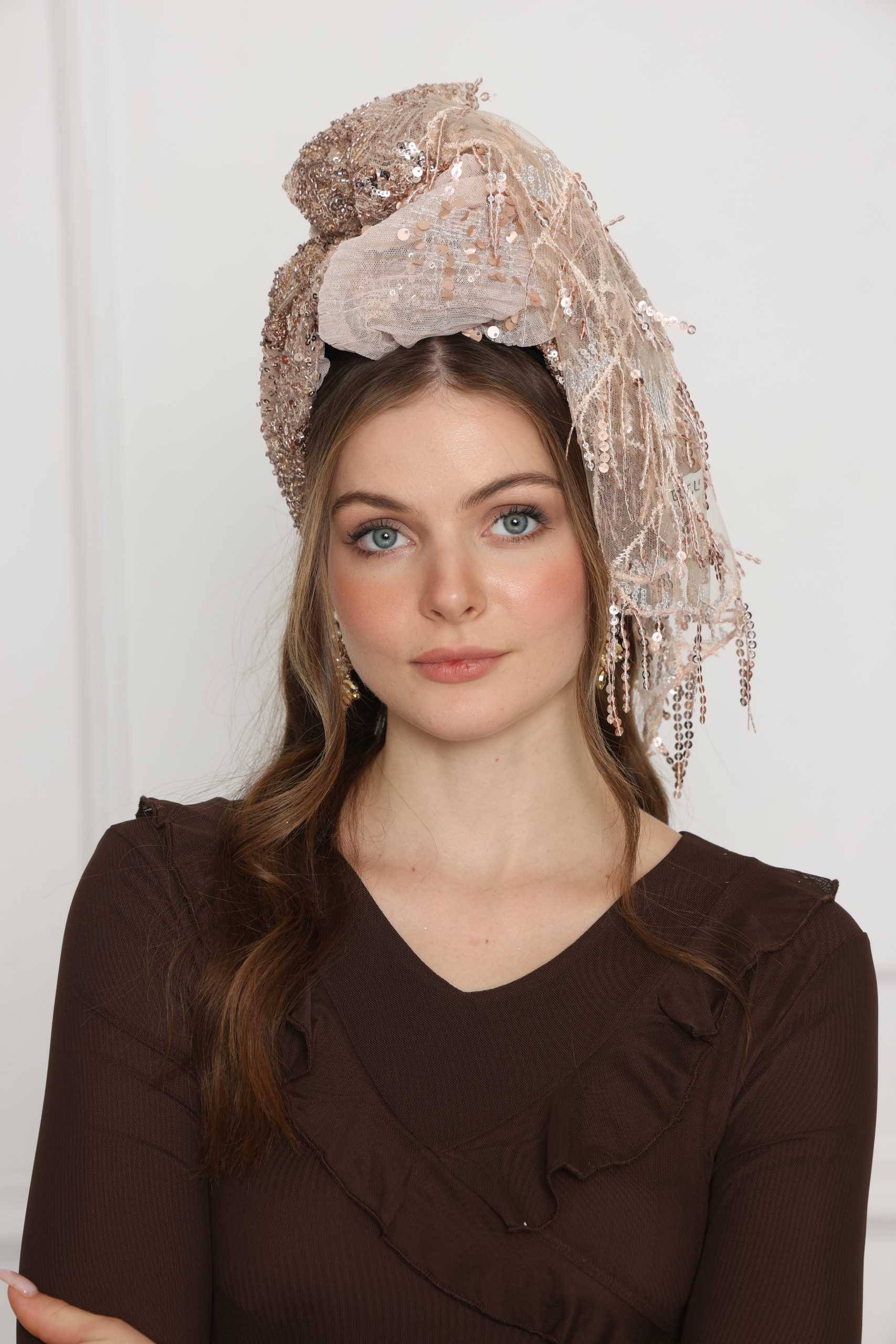 לונג שילוב ברונזה רקמת אבנים בעיצוב על זמני ובטקסטורה נעימה, מושלם כצעיף קליל, כיסוי אופנתי או כתוספת ייחודית ללוק יומיומי וחגיגי.