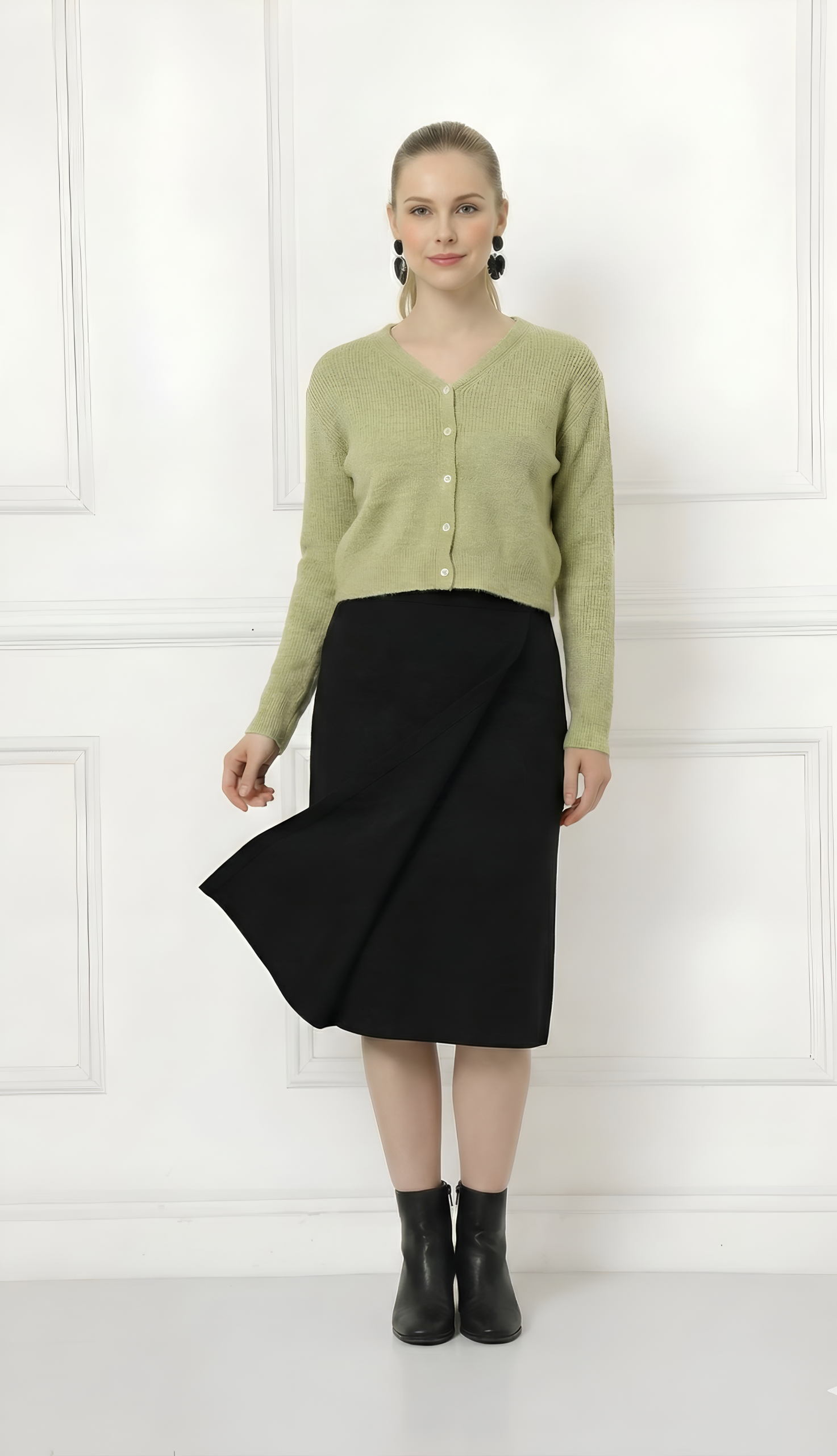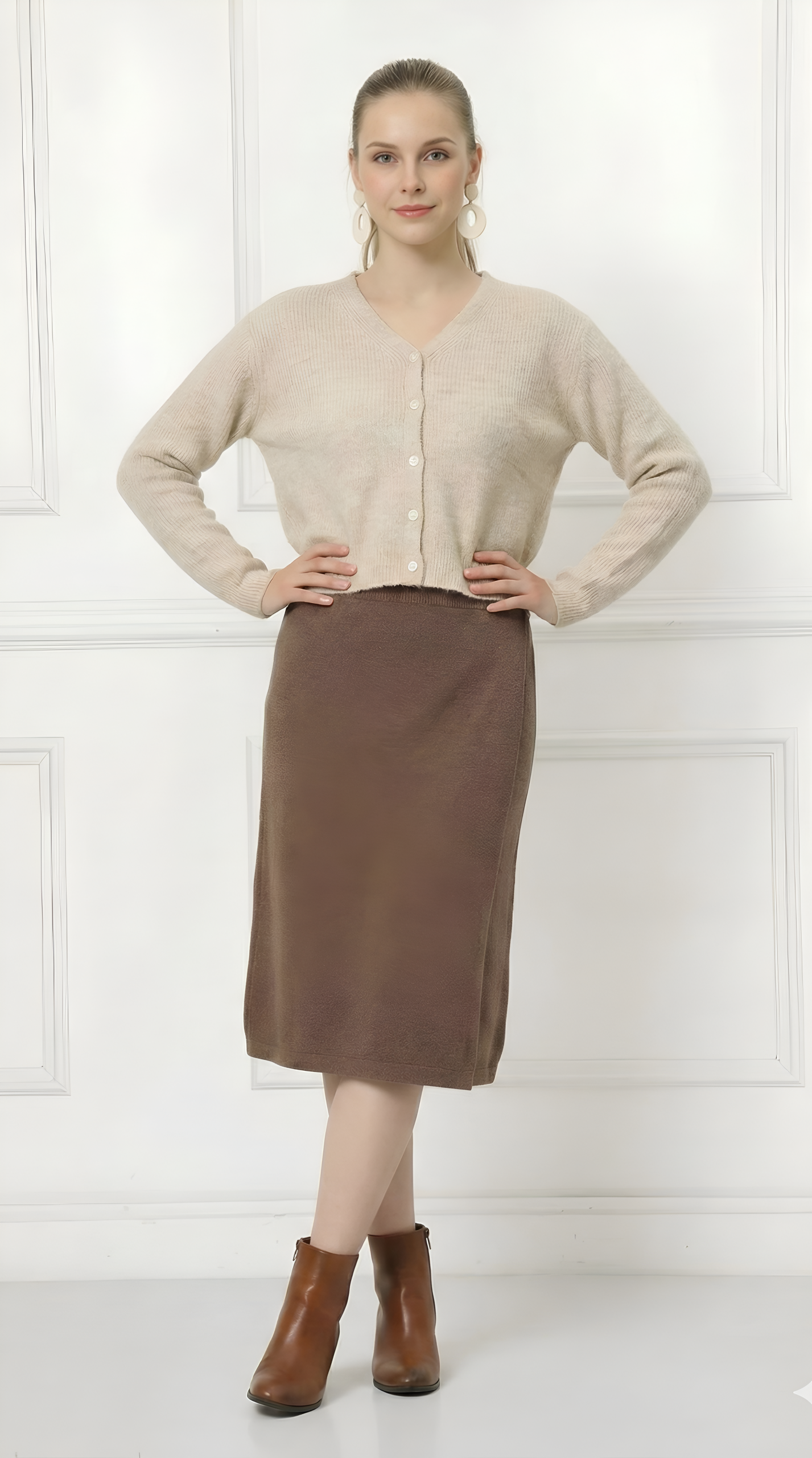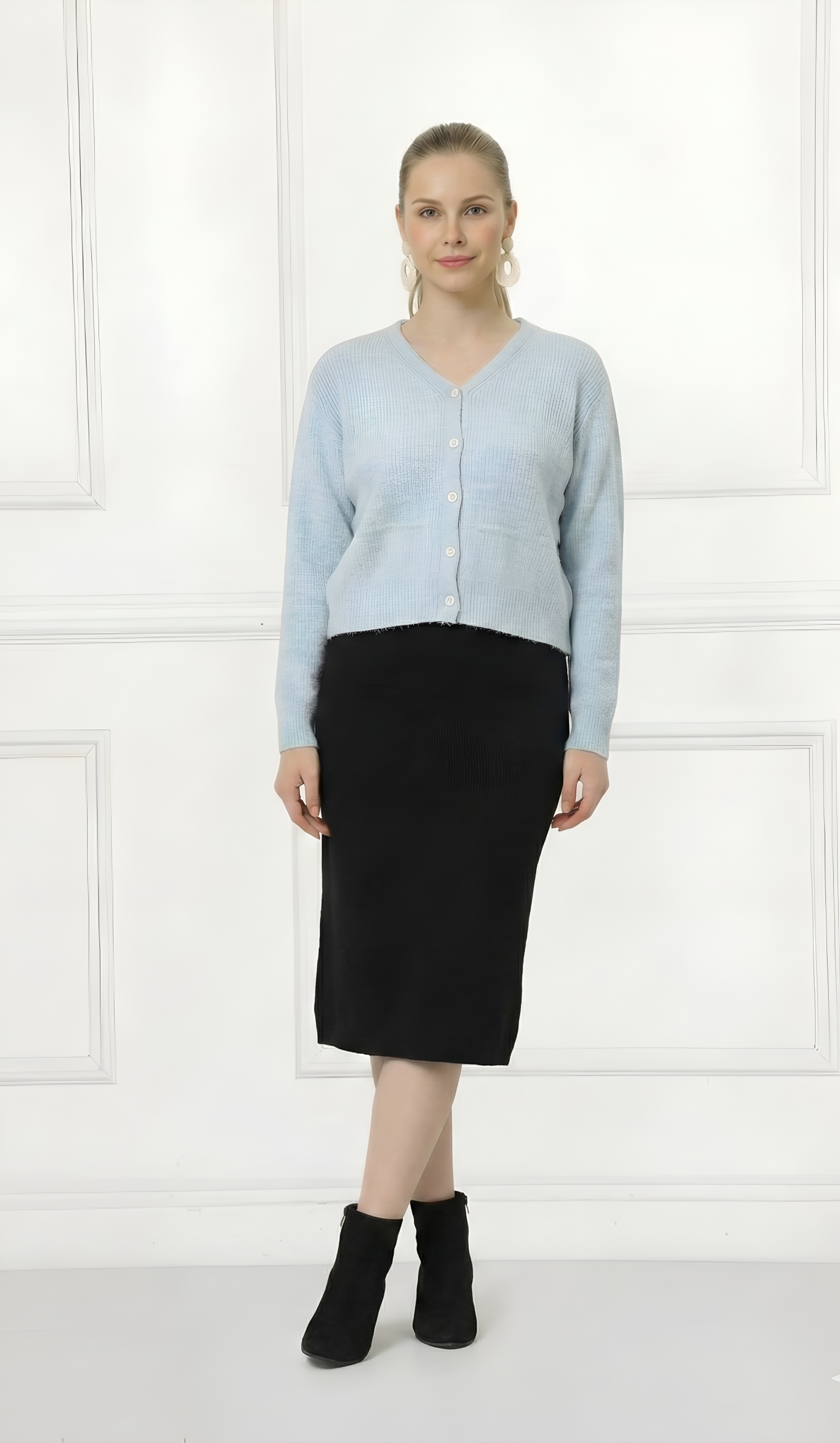 קרדיגן מבד סריג קליל ונעים, מתאים לכל עונה ומעניק מראה אלגנטי ונוח בקלות.