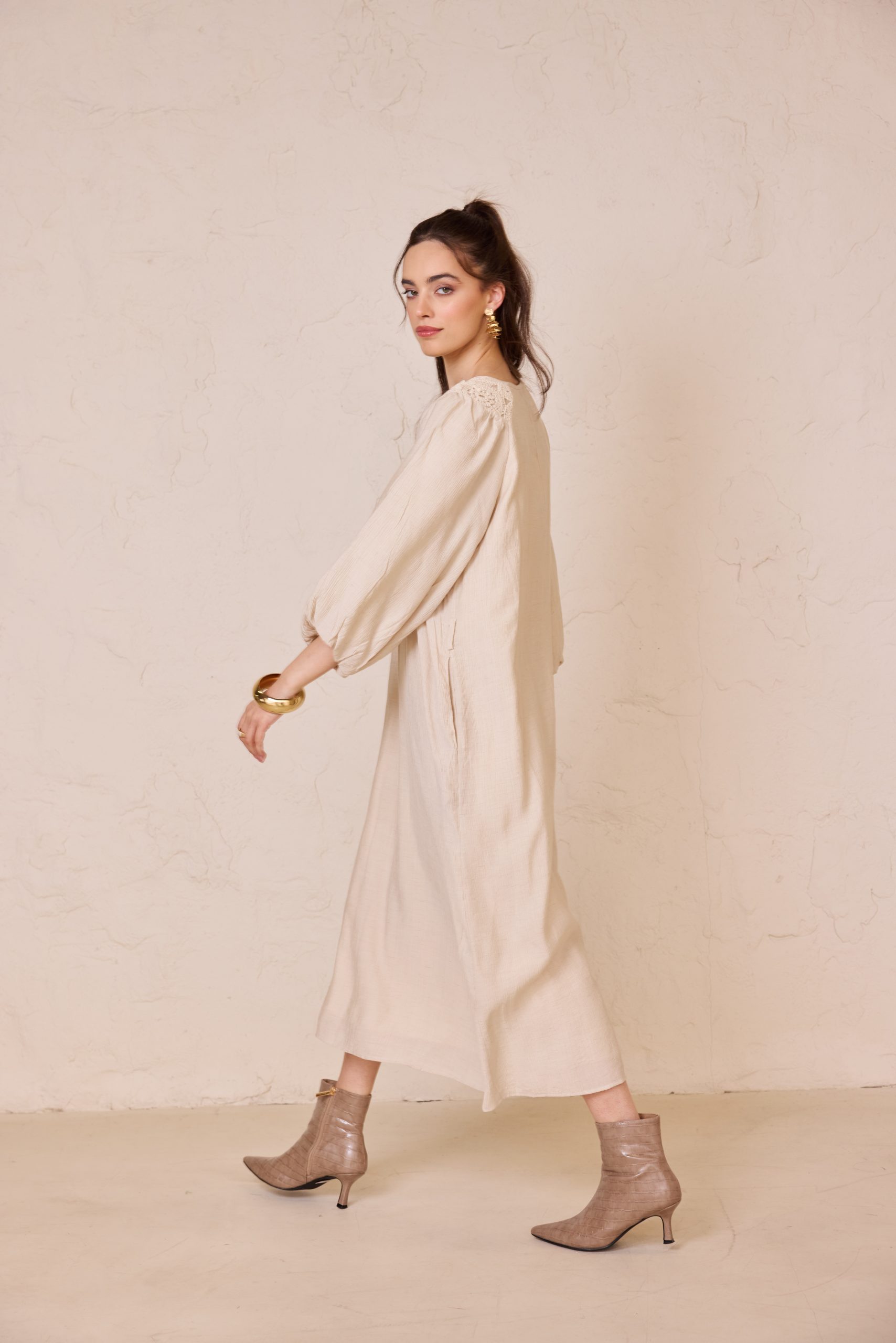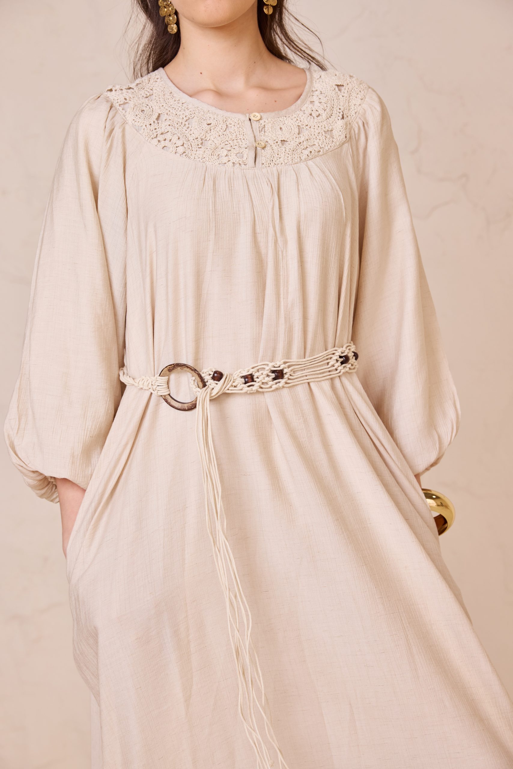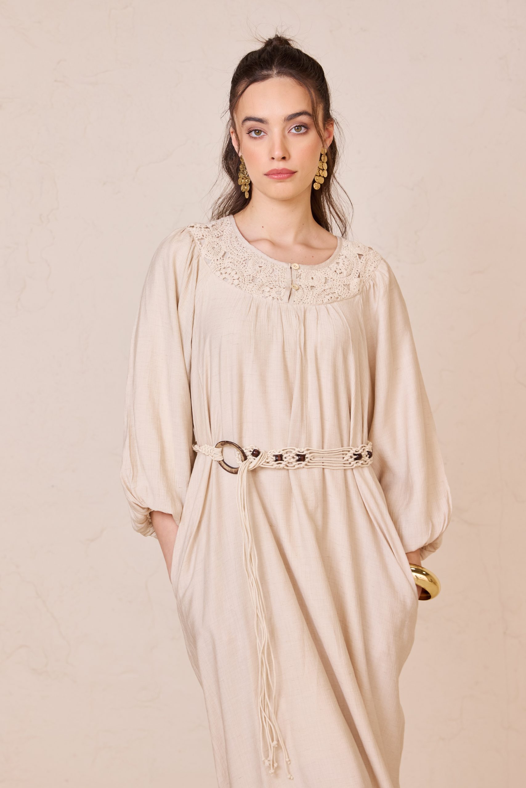 שמלה גלביה רקמה + חגורה