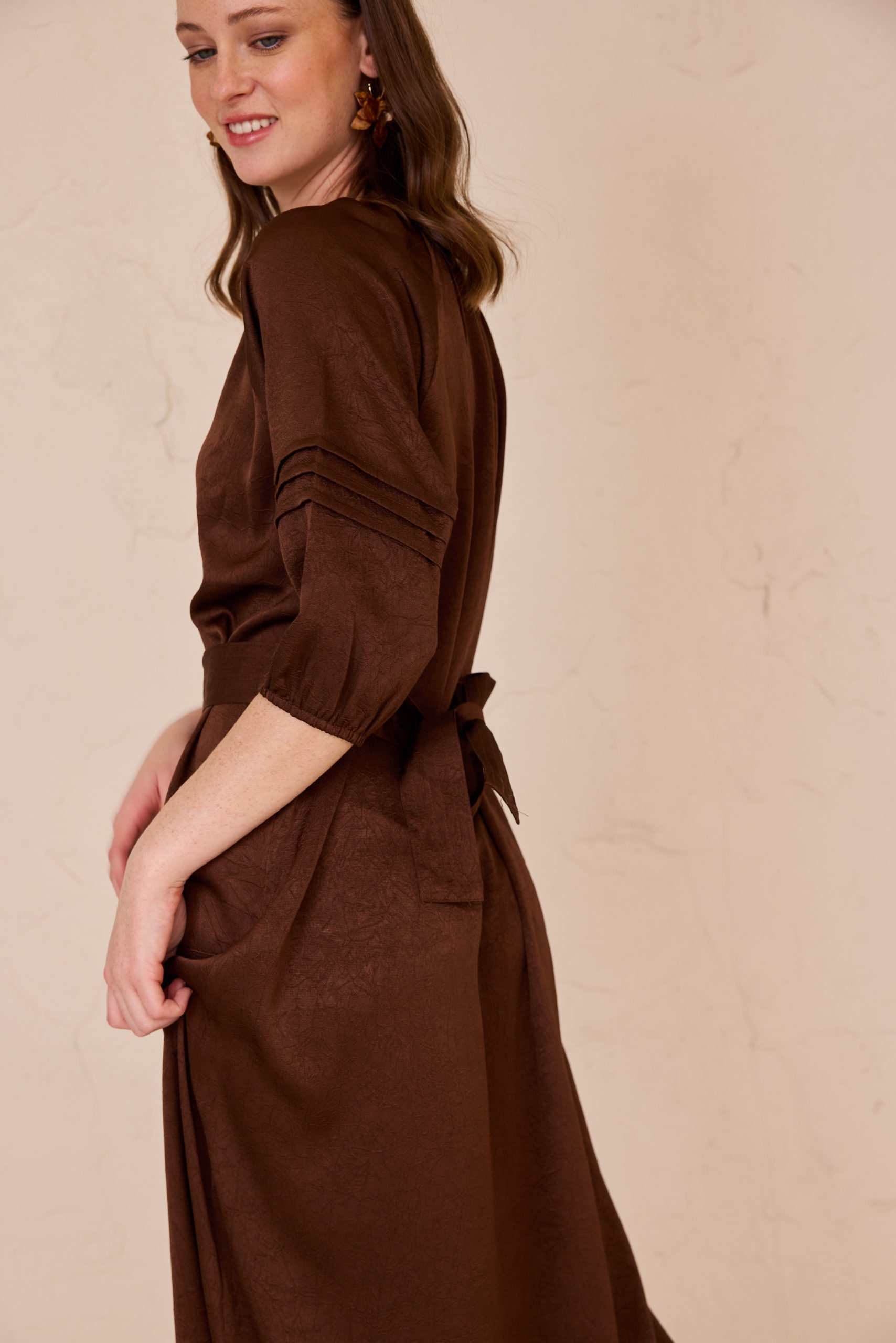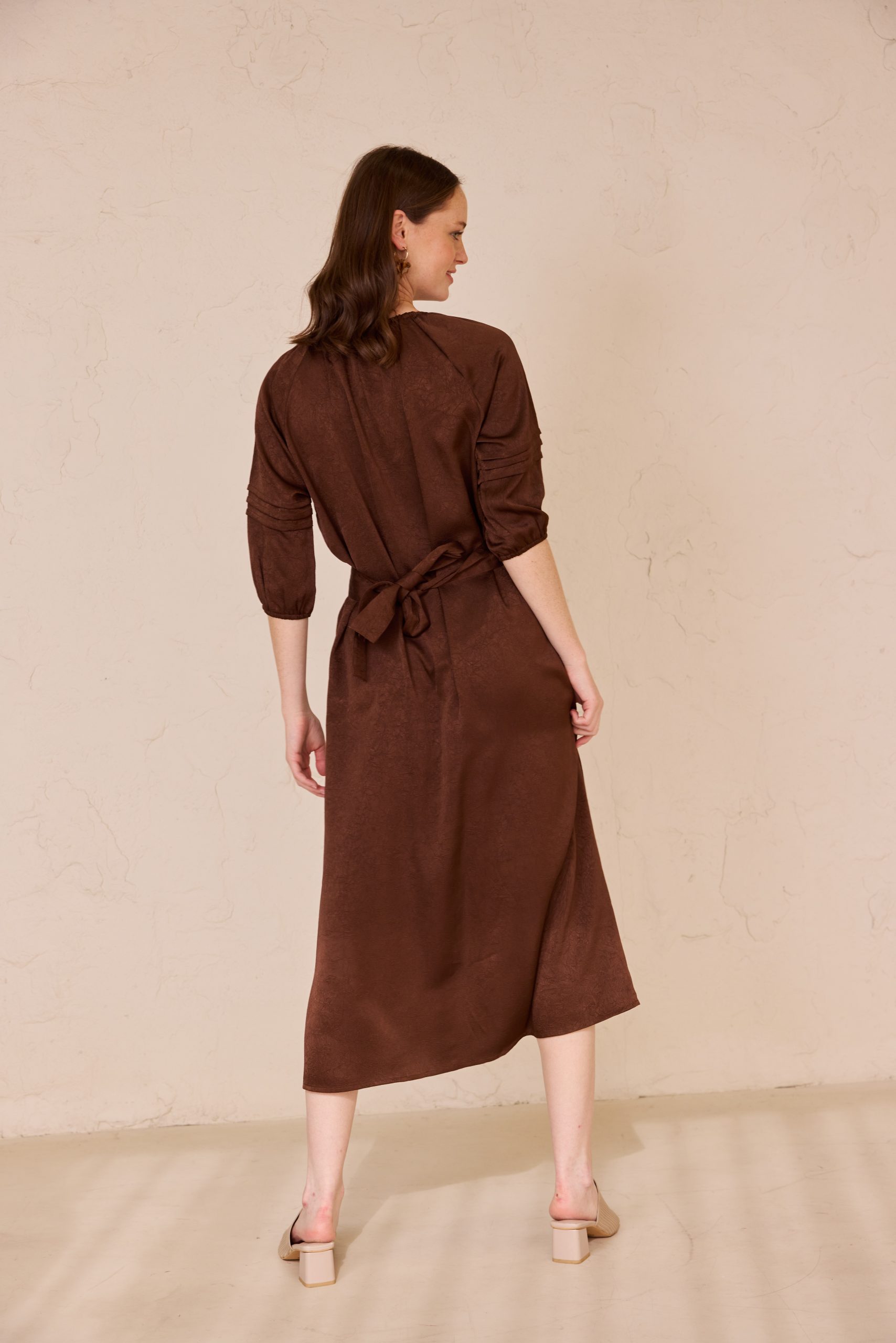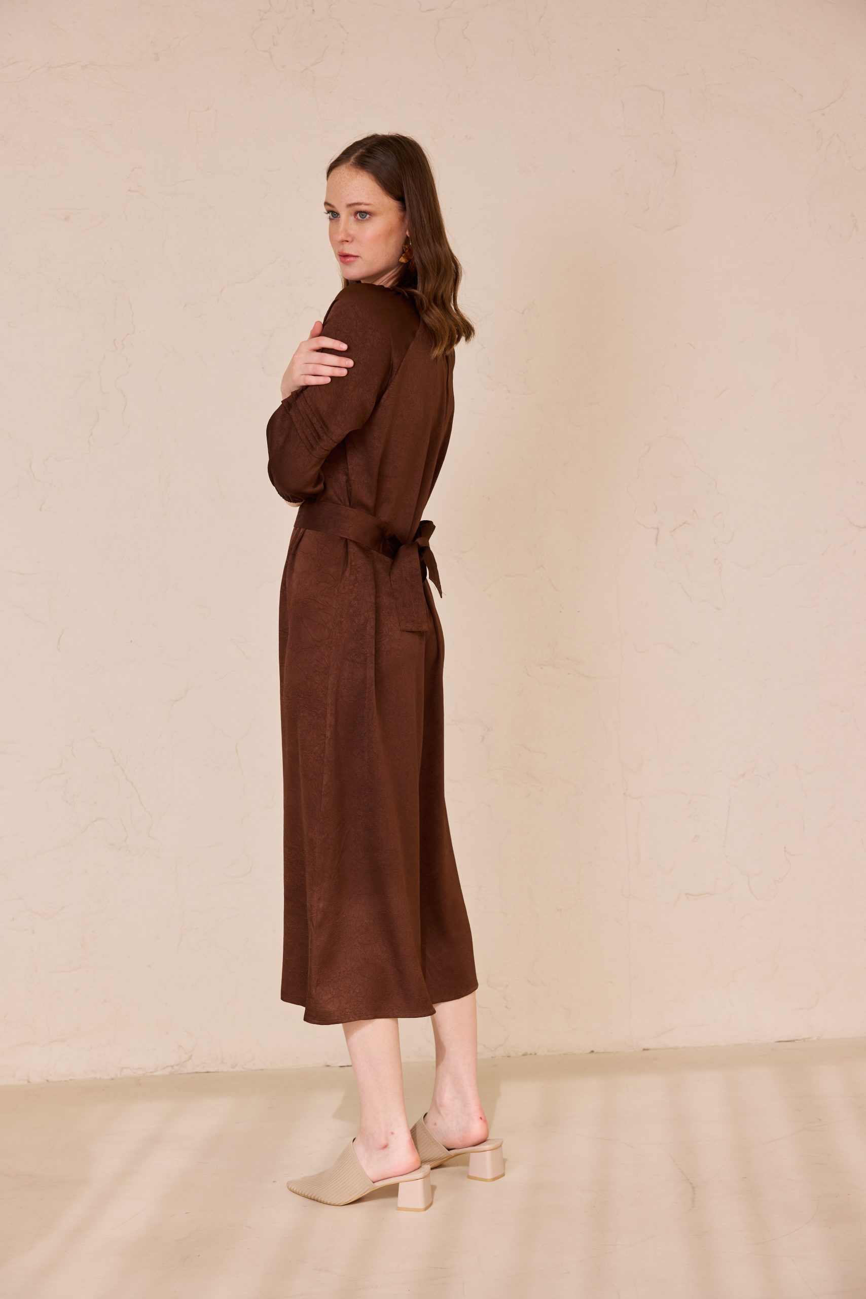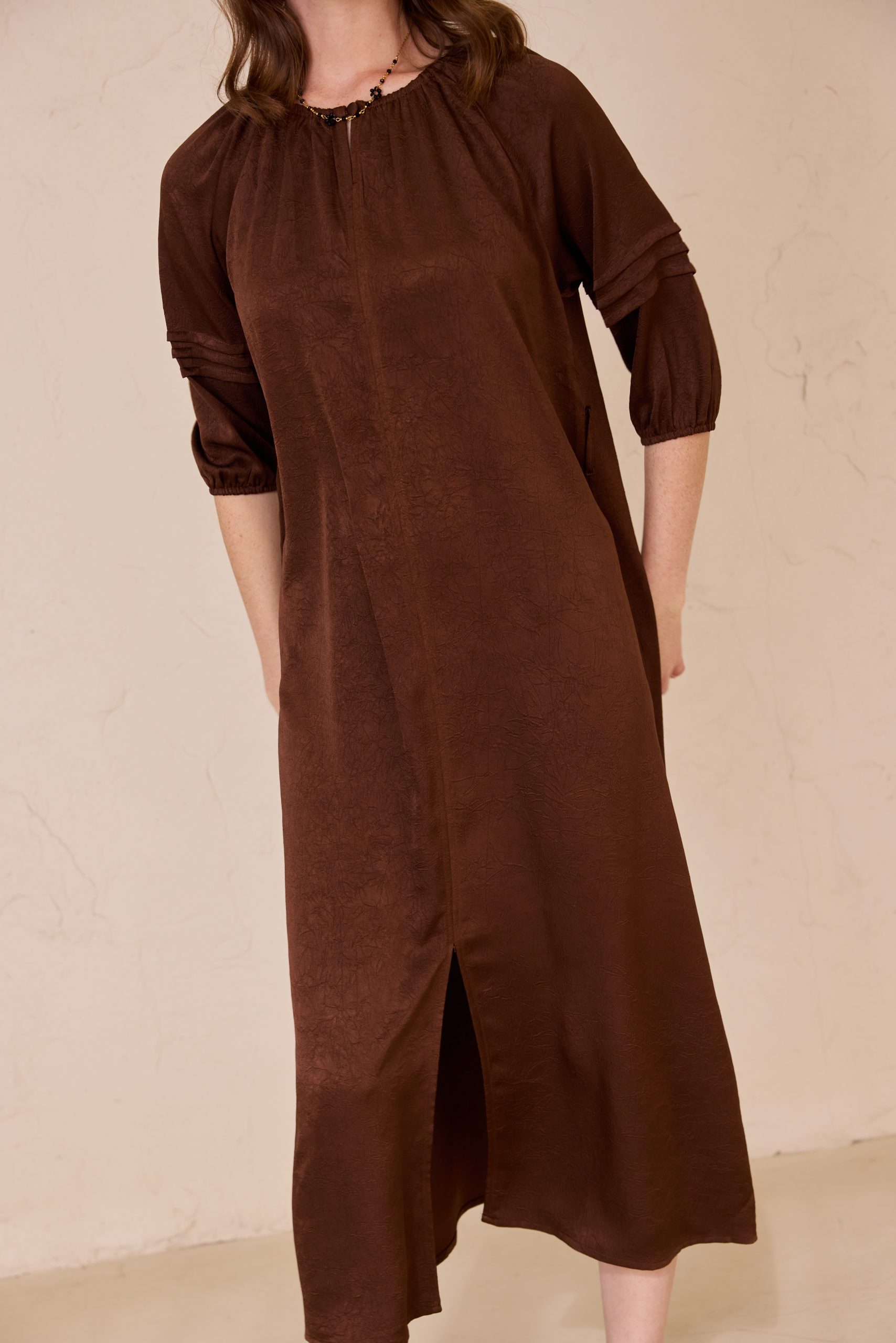 שמלת גלביה יוקרתית מבד סאטן מבריק ונעים, המעניקה מראה אצילי ומלא נוכחות.