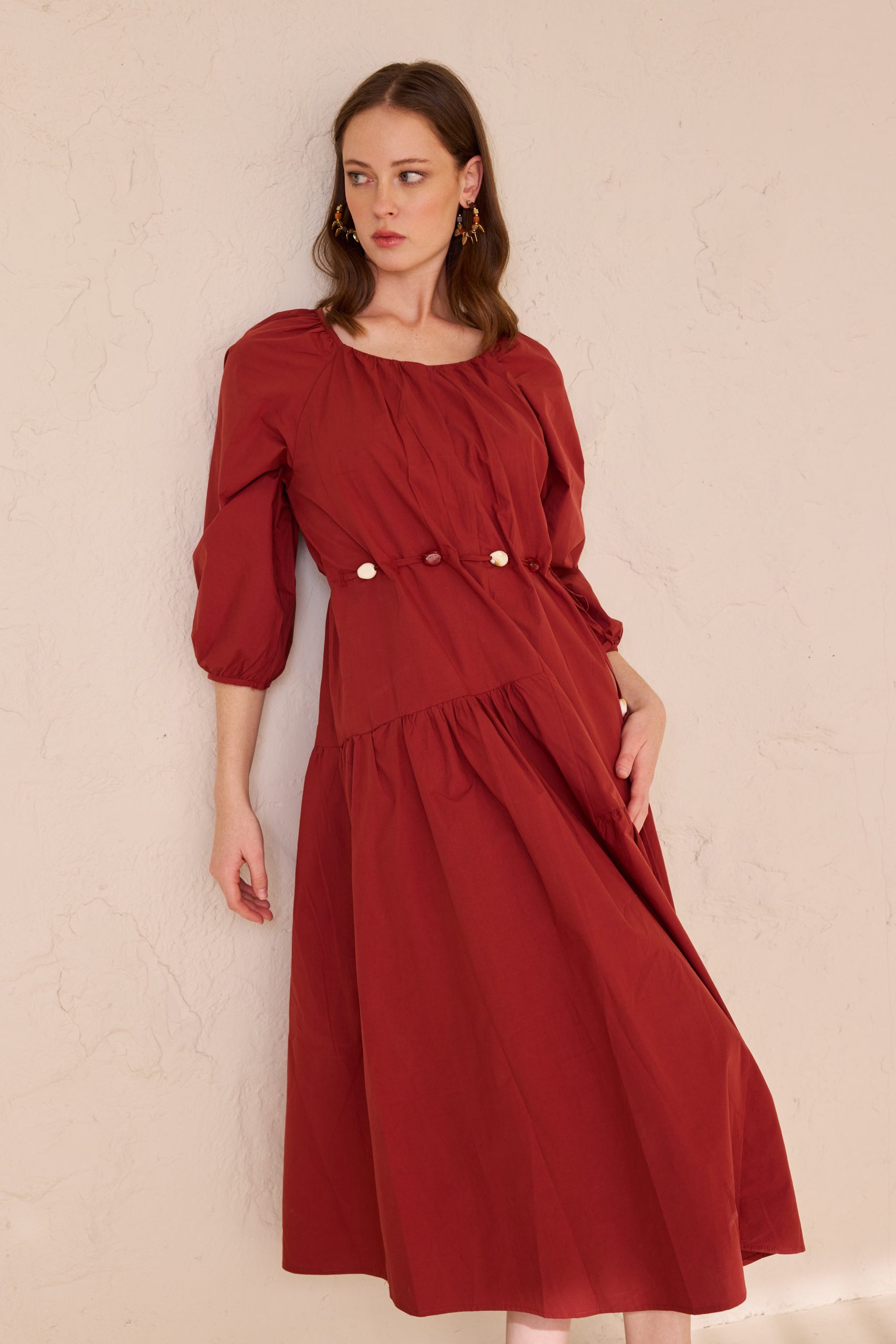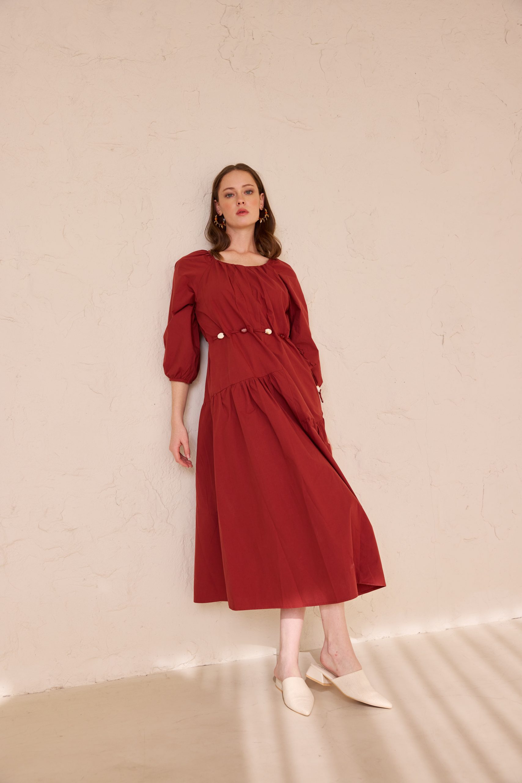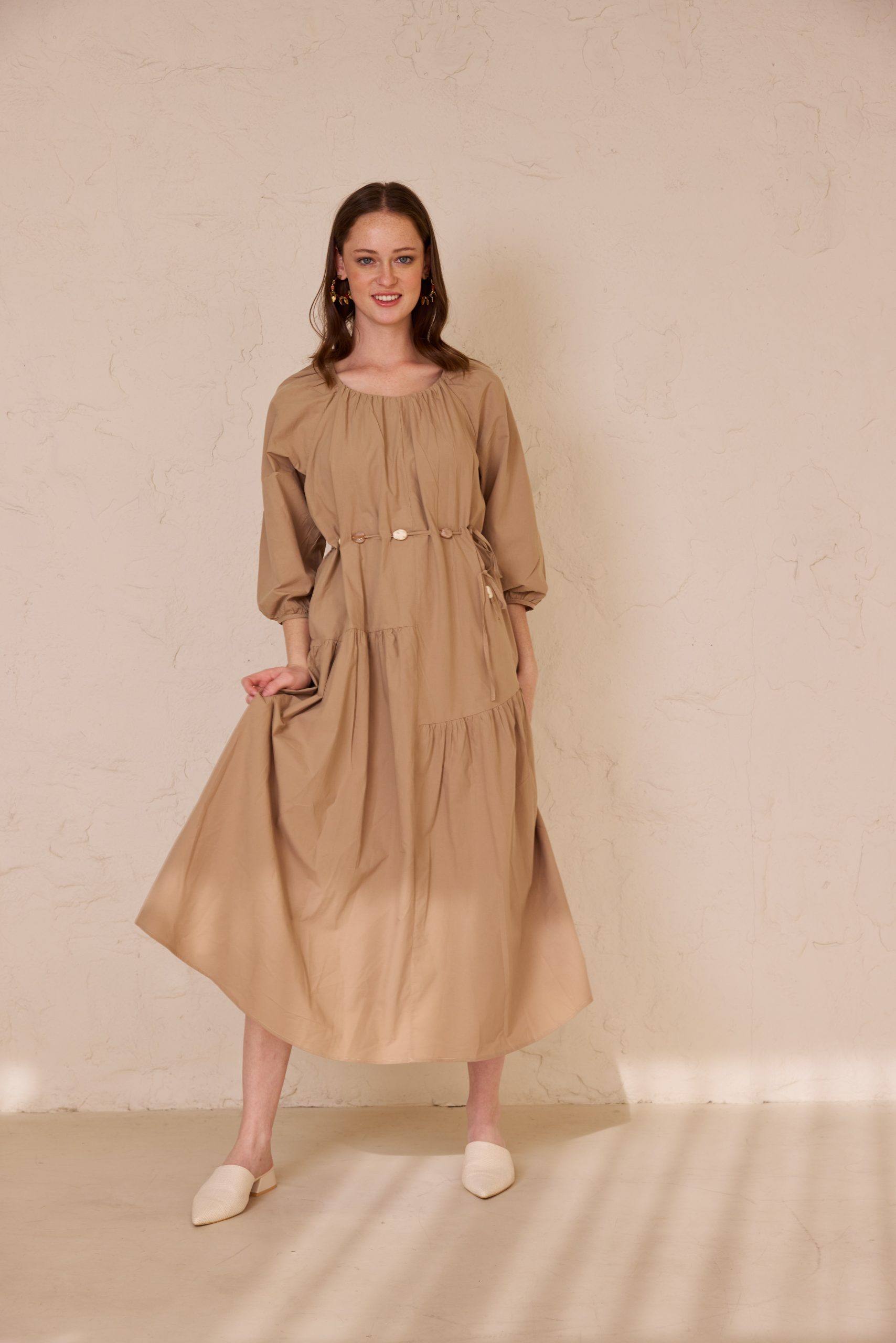 שמלה בגזרת לוז רחבה ונוחה, המשלבת חגורת אבנים יוקרתית המעניקה טאץ’ מעוצב וחגיגי.