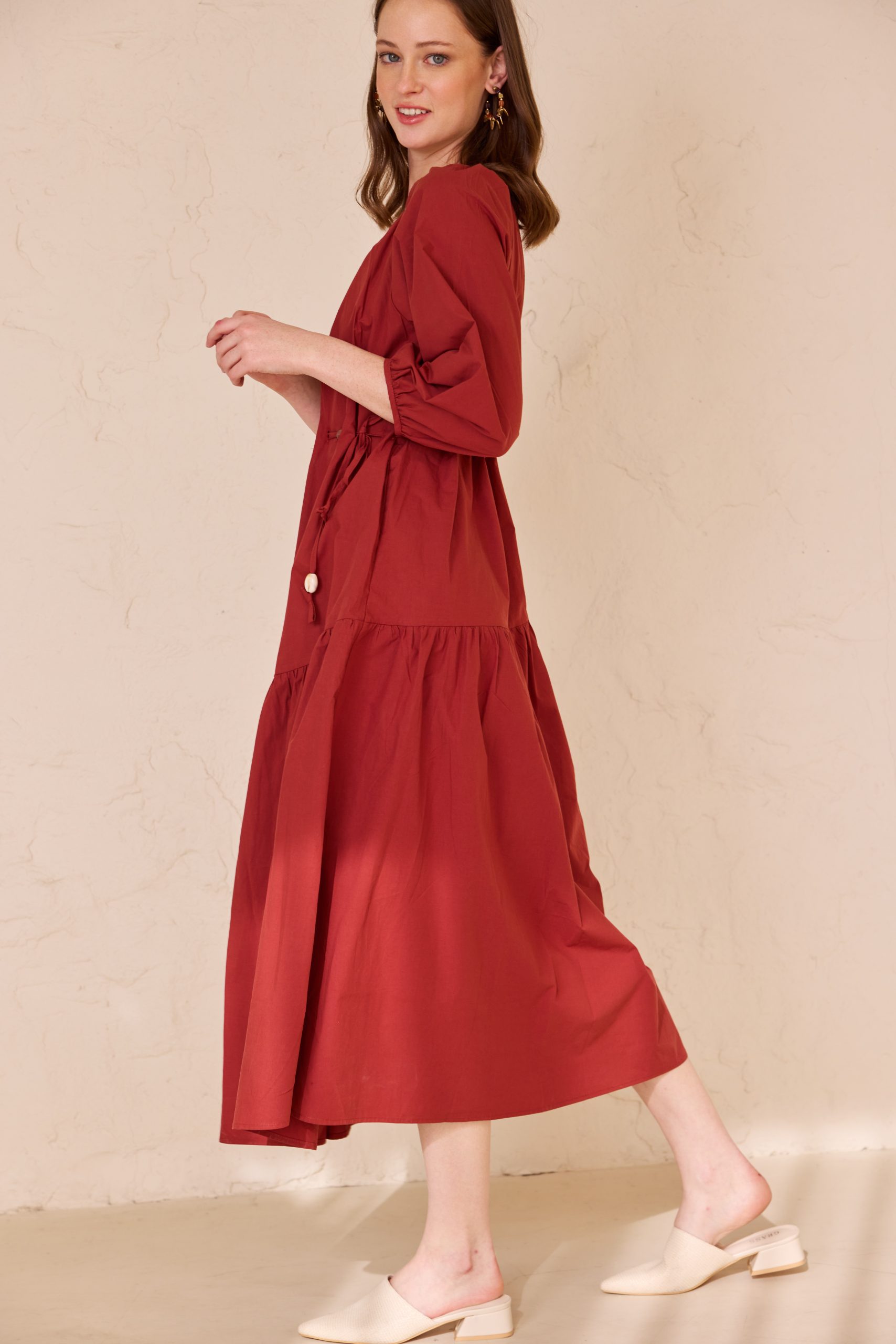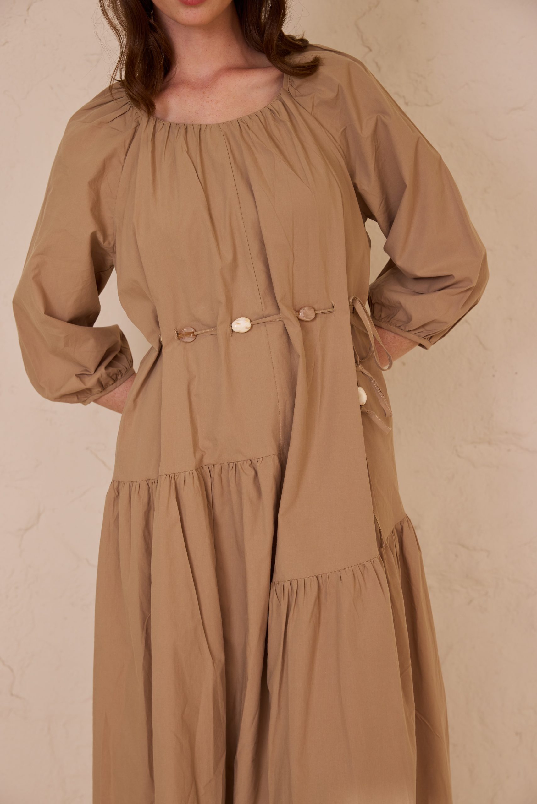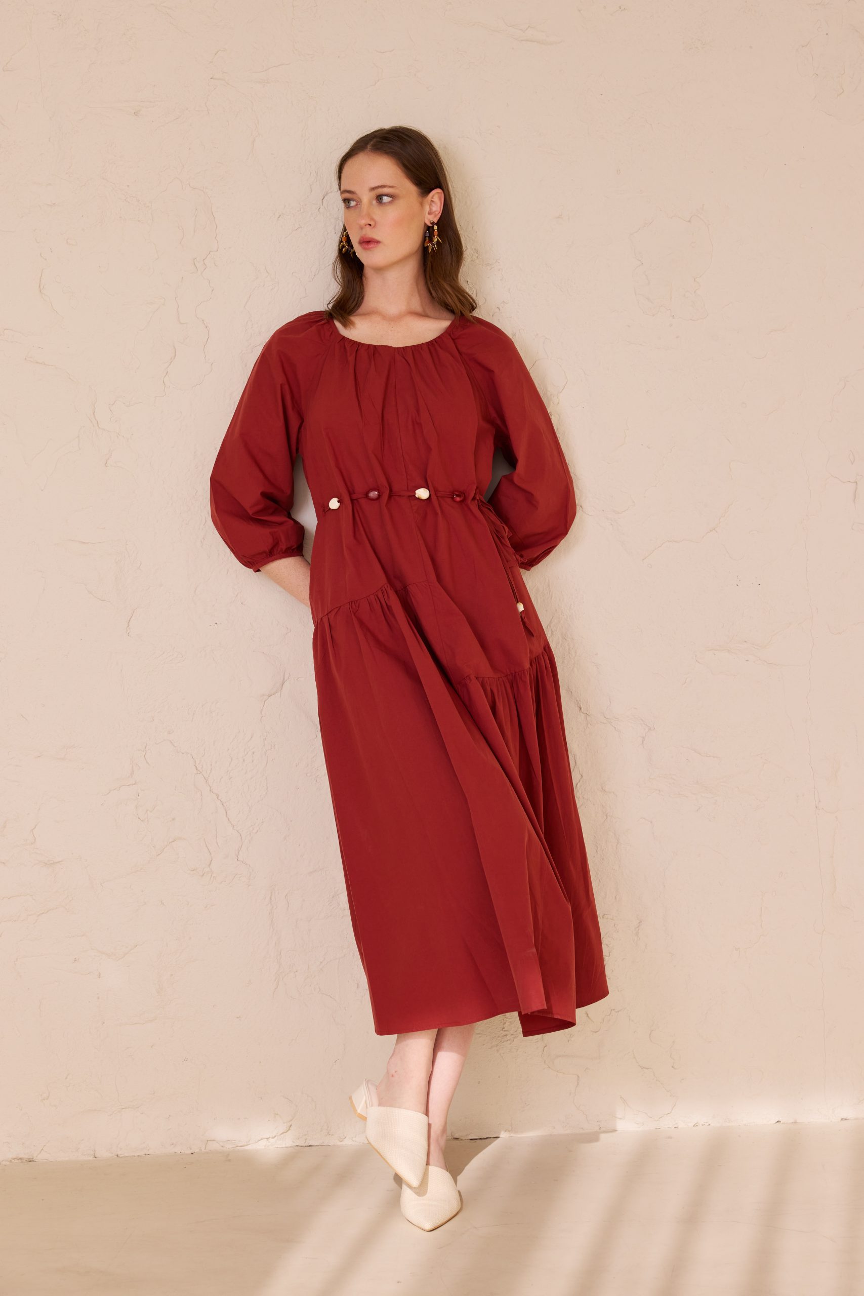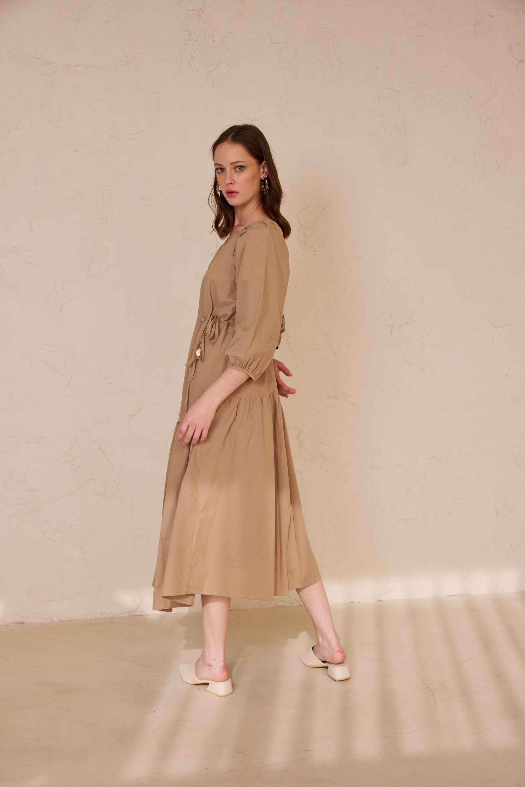 שמלה בגזרת לוז רחבה ונוחה, המשלבת חגורת אבנים יוקרתית המעניקה טאץ’ מעוצב וחגיגי.