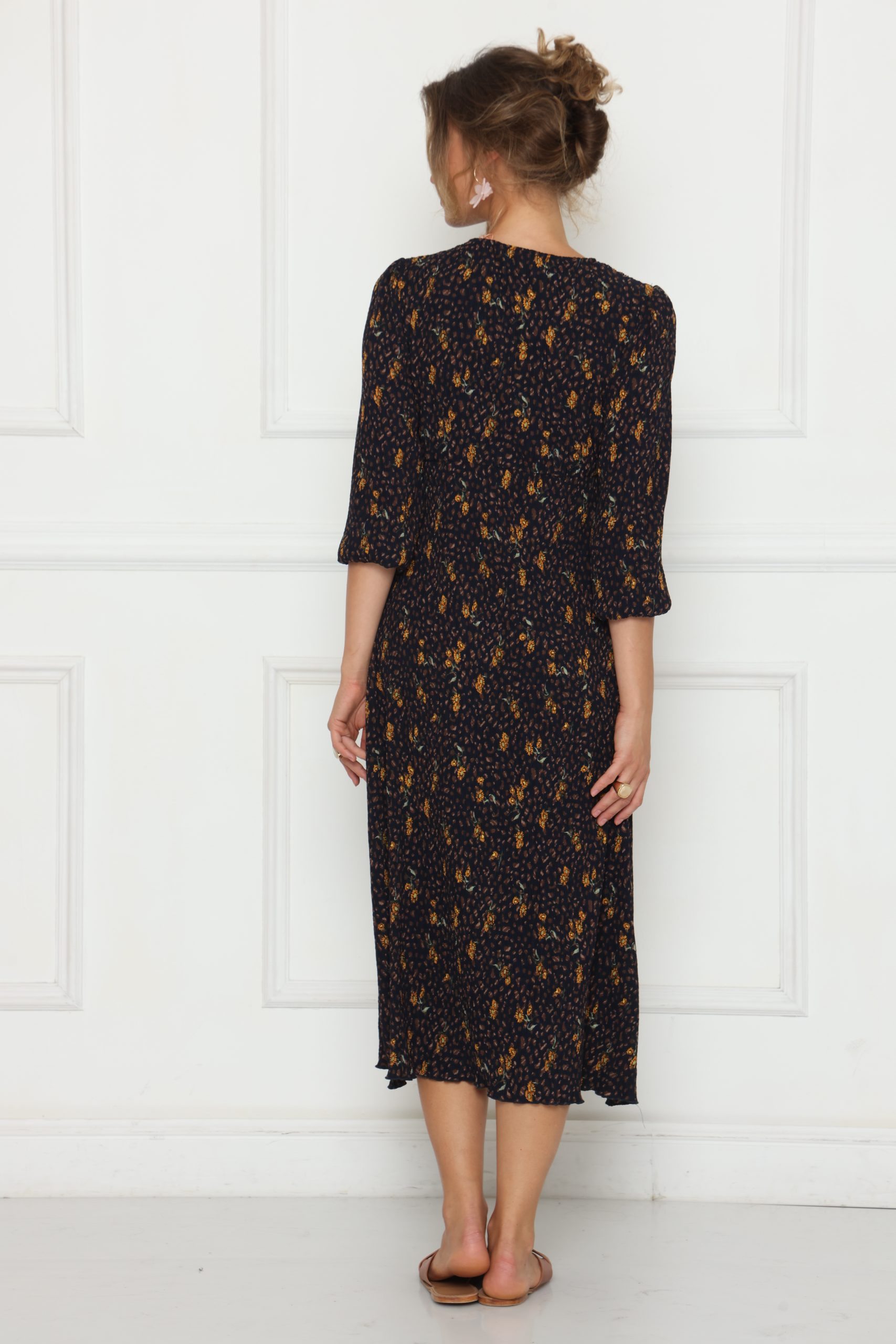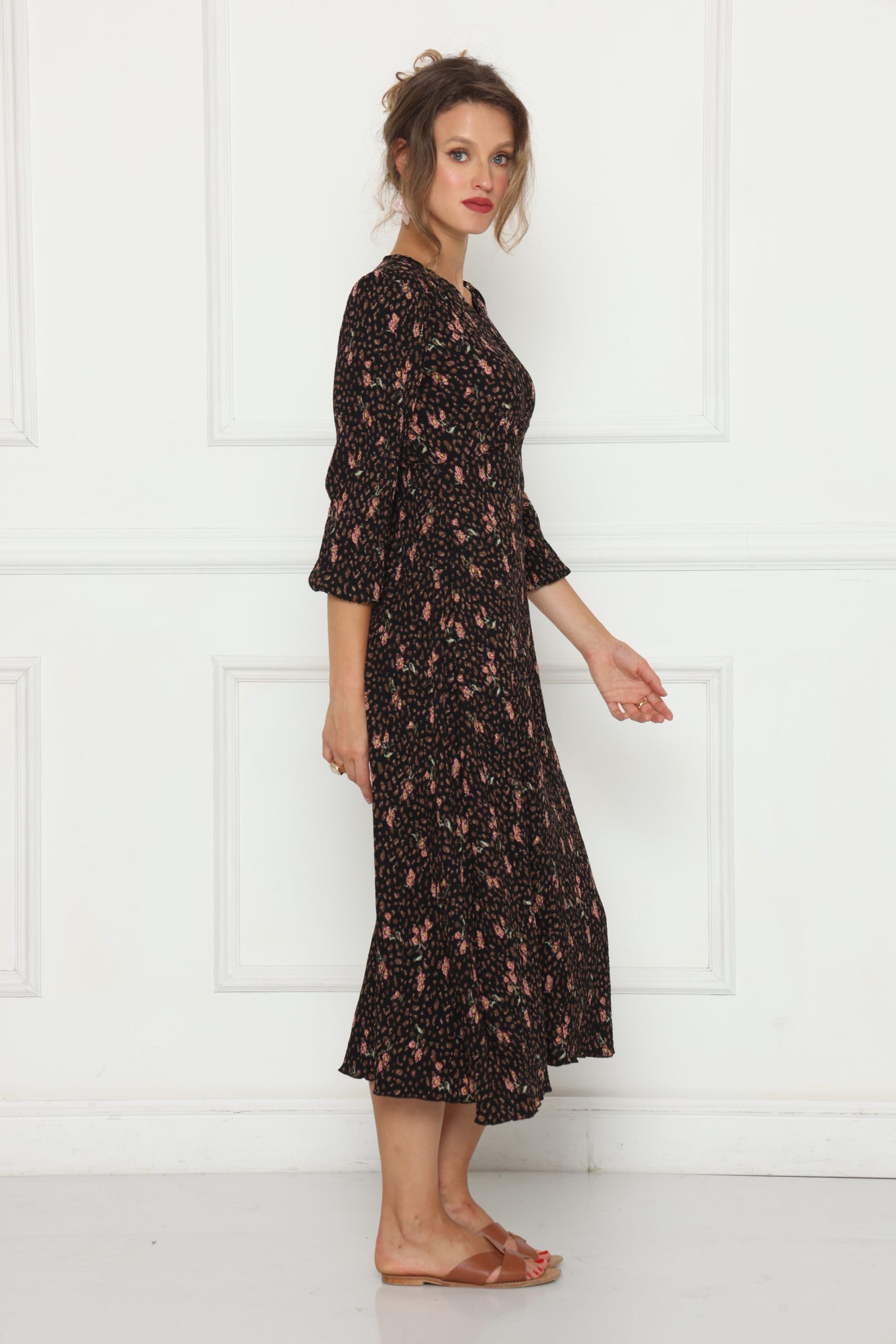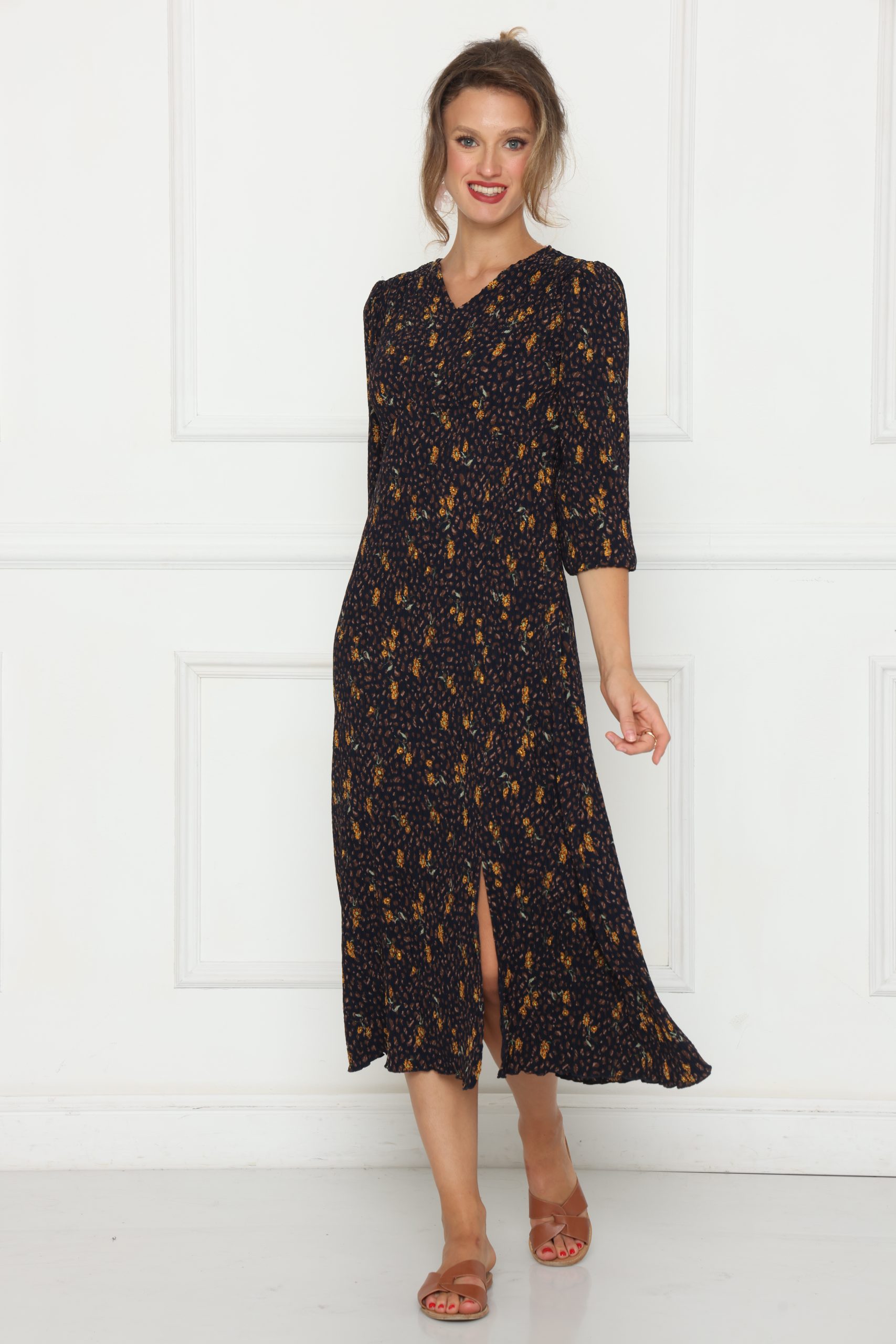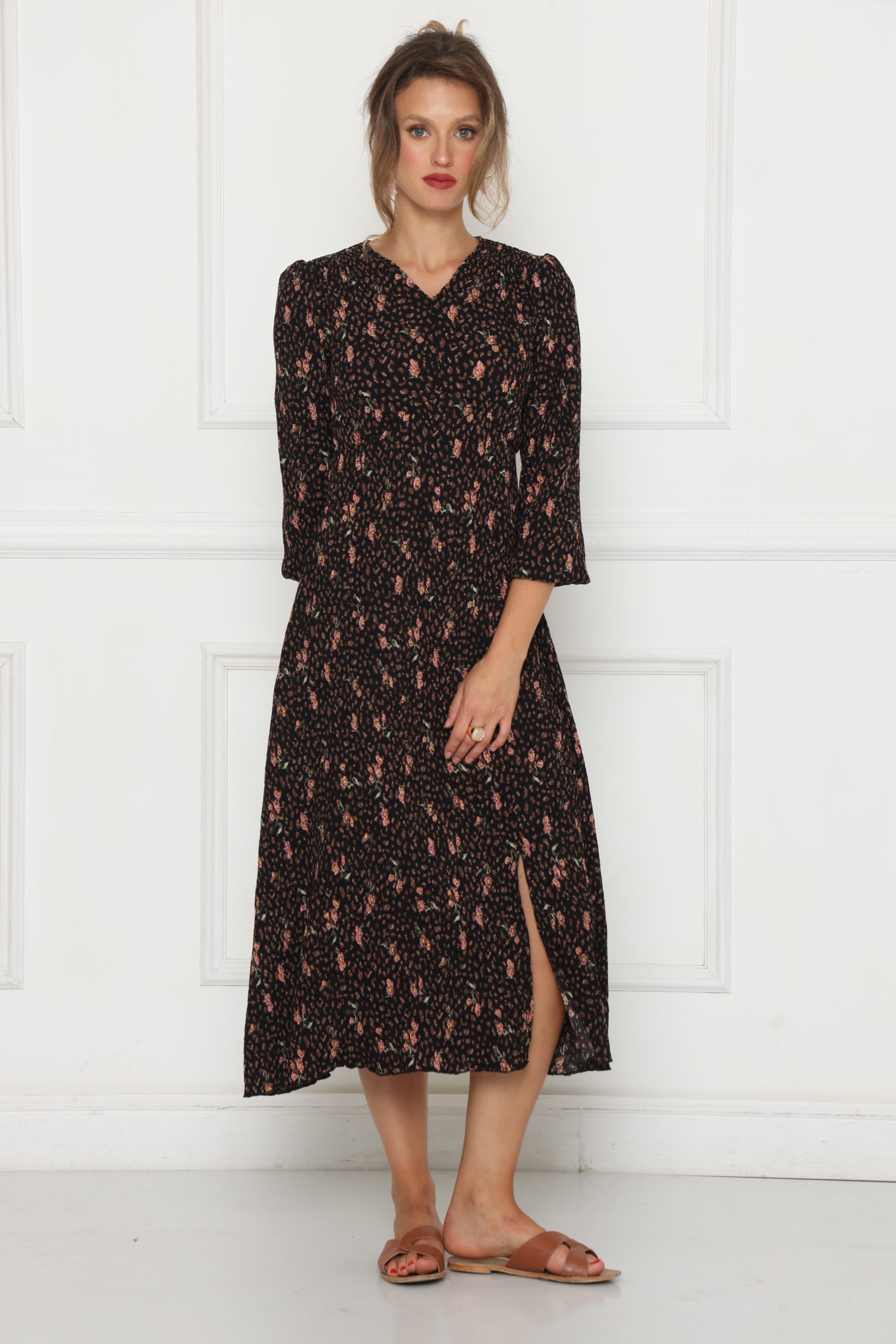 שמלה מודפסת המשלבת נוחות עם מראה עכשווי ואלגנטי. מפתח ה־V עם כיווץ עדין יוצר מראה נשי מחמיא תוך שמירה על צניעות, והבד המקומט מעניק טאץ’ קליל ואוורירי. הגזרה המשוחררת מתאימה לכל מבנה גוף ומאפשרת תחושת נוחות לאורך כל היום, בעוד השסע הקטן בחזית מוסיף רמז של תנועה וסטייל מודרני.